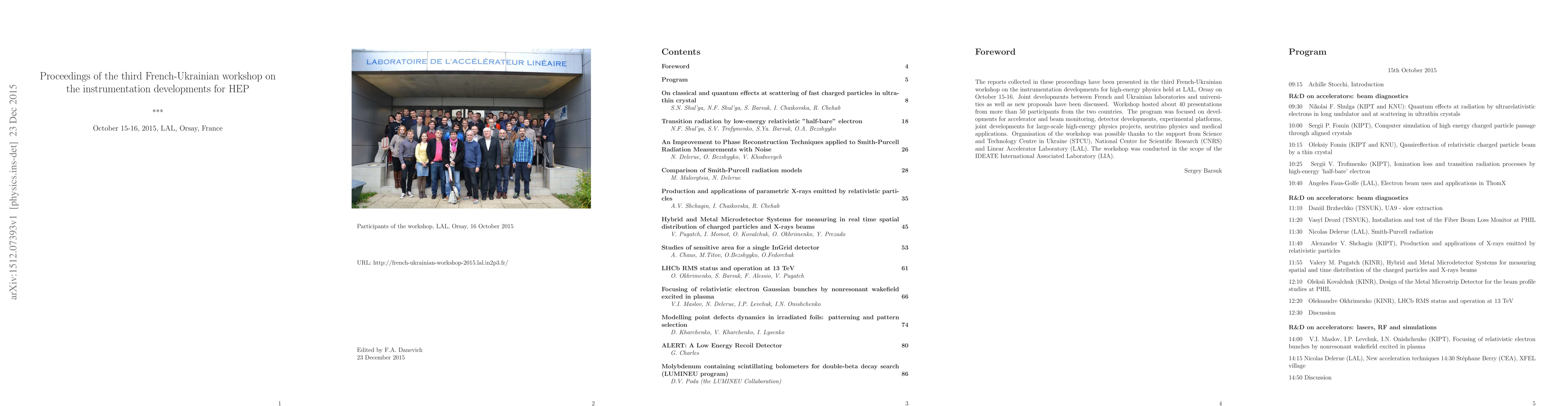 The reports collected in these proceedings have been presented in the third French-Ukrainian workshop on the instrumentation developments for high-energy physics held at LAL, Orsay on October 15-16. The workshop was conducted in the scope of the IDEATE International Associated Laboratory (LIA). Joint developments between French and Ukrainian laboratories and universities as well as new proposals have been discussed. The main topics of the papers presented in the Proceedings are developments for accelerator and beam monitoring, detector developments, joint developments for large-scale high-energy and astroparticle physics projects, medical applications.