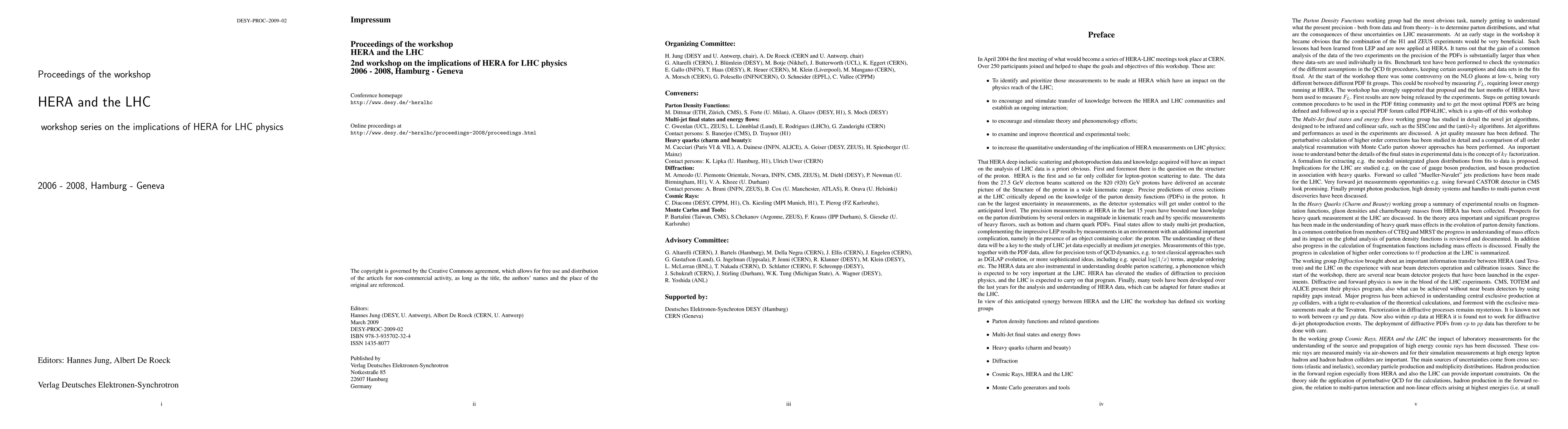 2nd workshop on the implications of HERA for LHC physics. Working groups: Parton Density Functions Multi-jet final states and energy flows Heavy quarks (charm and beauty) Diffraction Cosmic Rays Monte Carlos and Tools