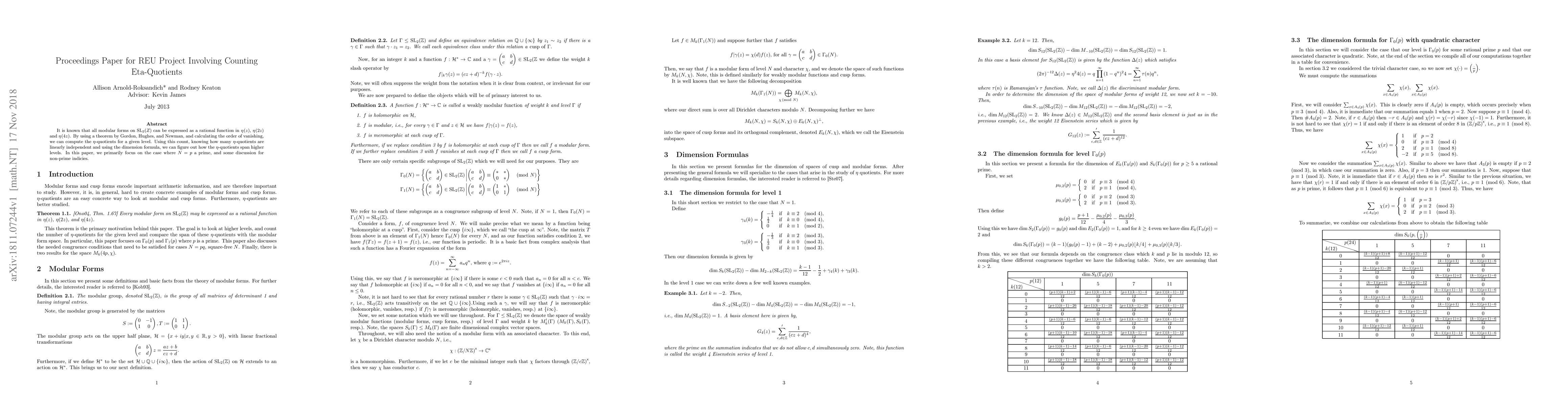 This paper explores the computation of $\eta$-quotients for modular forms at prime levels $N=p$ using Gordon, Hughes, and Newman's theorem. It discusses how the count of $\eta$-quotients determines their linear independence and spans higher levels, with some extension to non-prime indices.