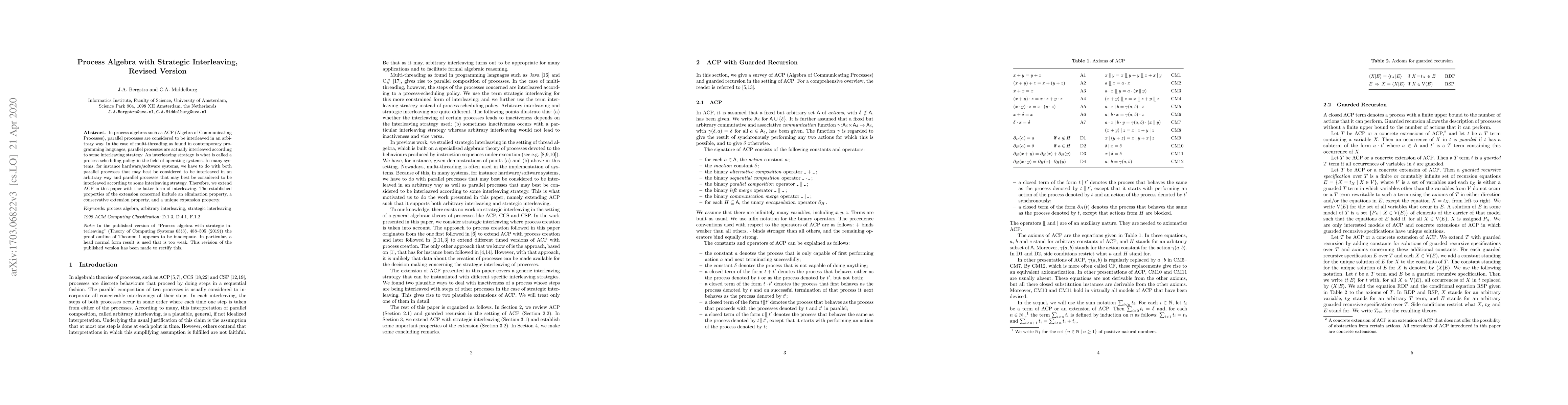 In process algebras such as ACP (Algebra of Communicating Processes), parallel processes are considered to be interleaved in an arbitrary way. In the case of multi-threading as found in contemporary programming languages, parallel processes are actually interleaved according to some interleaving strategy. An interleaving strategy is what is called a process-scheduling policy in the field of operating systems. In many systems, for instance hardware/software systems, we have to do with both parallel processes that may best be considered to be interleaved in an arbitrary way and parallel processes that may best be considered to be interleaved according to some interleaving strategy. Therefore, we extend ACP in this paper with the latter form of interleaving. The established properties of the extension concerned include an elimination property, a conservative extension property, and a unique expansion property.