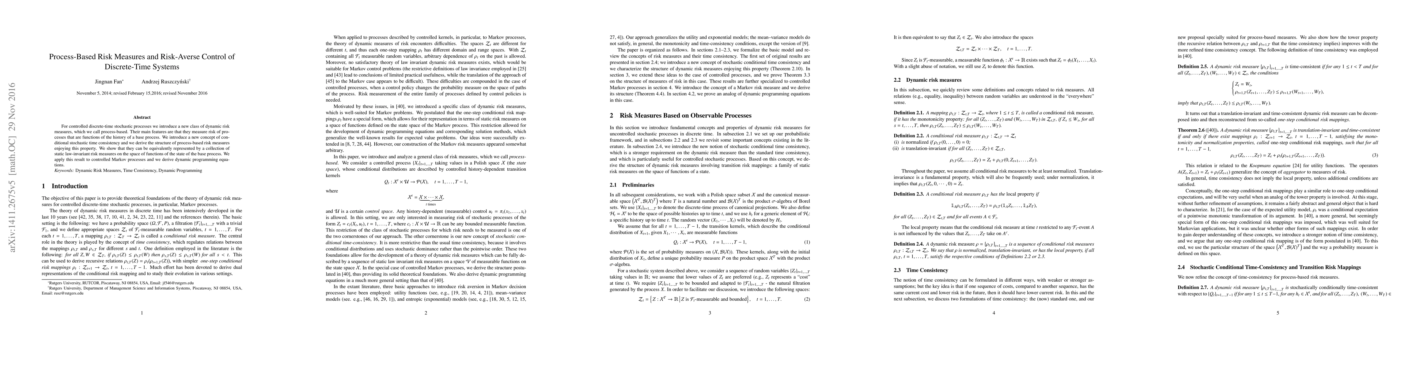 This paper introduces a new class of dynamic risk measures for controlled discrete-time stochastic processes, which measure risk based on the history of a base process. It shows that these risk measures can be equivalently represented by static law-invariant risk measures on the space of functions of the state of the base process.