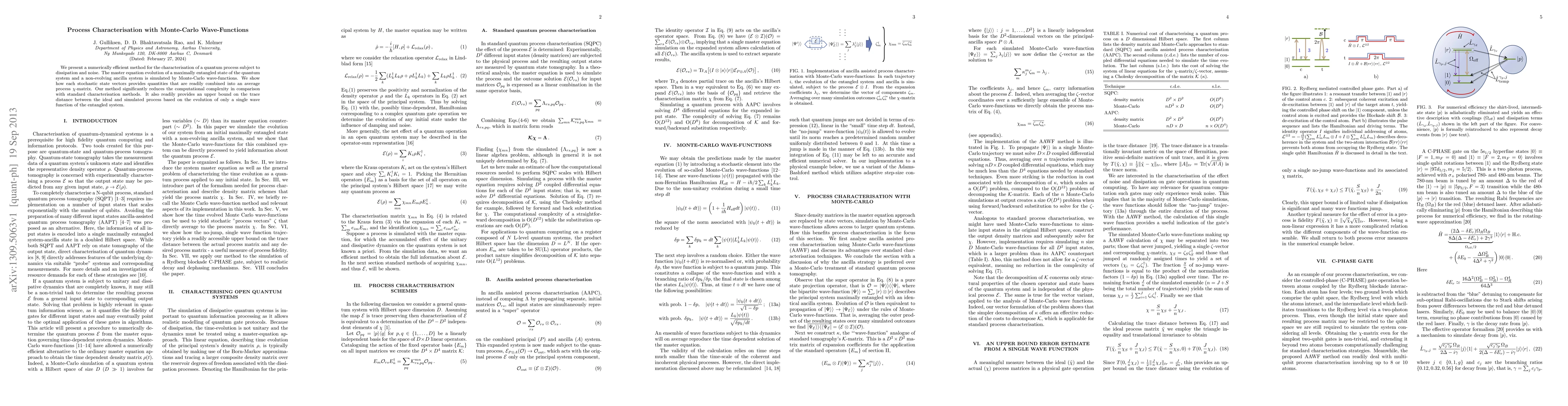 This paper introduces a computationally efficient Monte-Carlo wave-function method for characterizing quantum processes under dissipation and noise. It simplifies the simulation of entangled states and provides an upper bound on trace distance with reduced computational complexity.