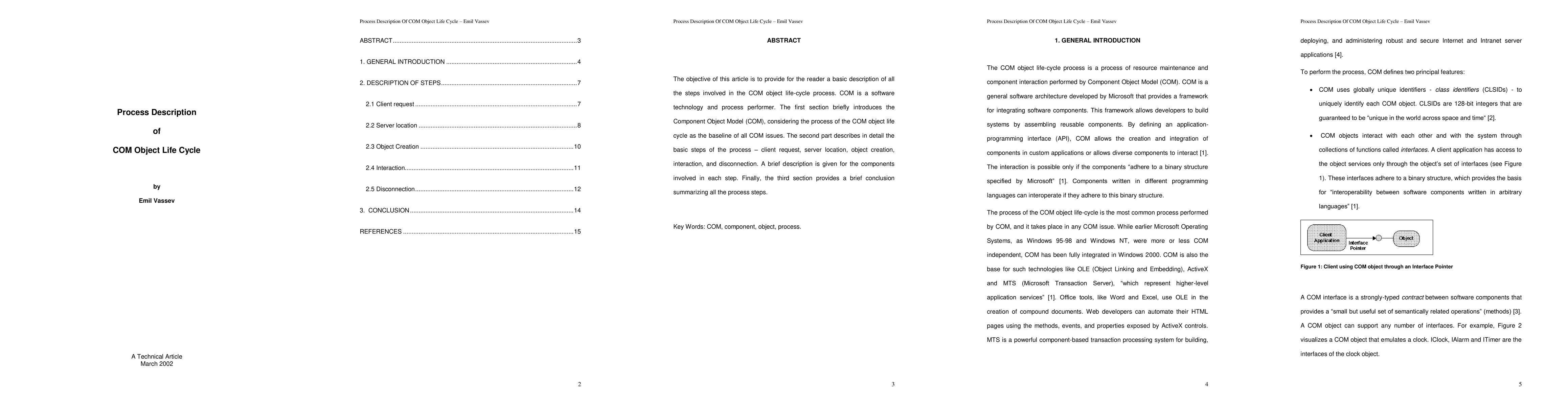 This paper outlines the fundamental steps of the COM object life cycle, starting with client request and detailing server location, object creation, interaction, and disconnection. It concludes by summarizing the essential components involved in each step.
