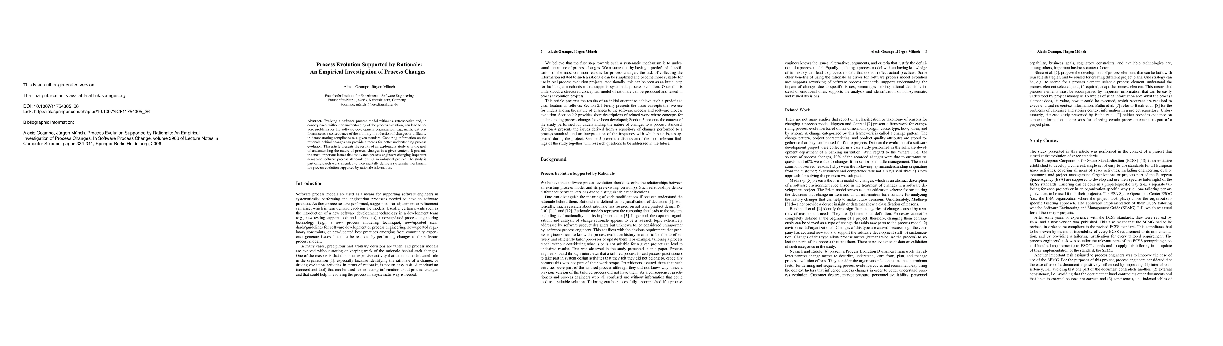Evolving a software process model without a retrospective and, in consequence, without an understanding of the process evolution, can lead to severe problems for the software development organization, e.g., inefficient performance as a consequence of the arbitrary introduction of changes or difficulty in demonstrating compliance to a given standard. Capturing information on the rationale behind changes can provide a means for better understanding process evolution. This article presents the results of an exploratory study with the goal of understanding the nature of process changes in a given context. It presents the most important issues that motivated process engineers changing important aerospace software process standards during an industrial project. The study is part of research work intended to incrementally define a systematic mechanism for process evolution supported by rationale information.