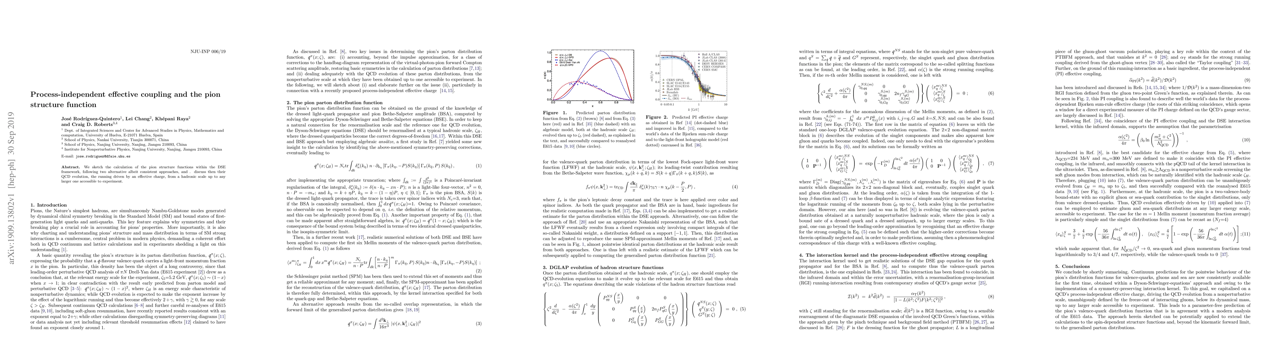We sketch the calculation of the pion structure functions within the DSE framework, following two alternative albeit consistent approaches, and discuss then their QCD evolution, the running driven by an effective charge, from a hadronic scale up to any larger one accessible to experiment.