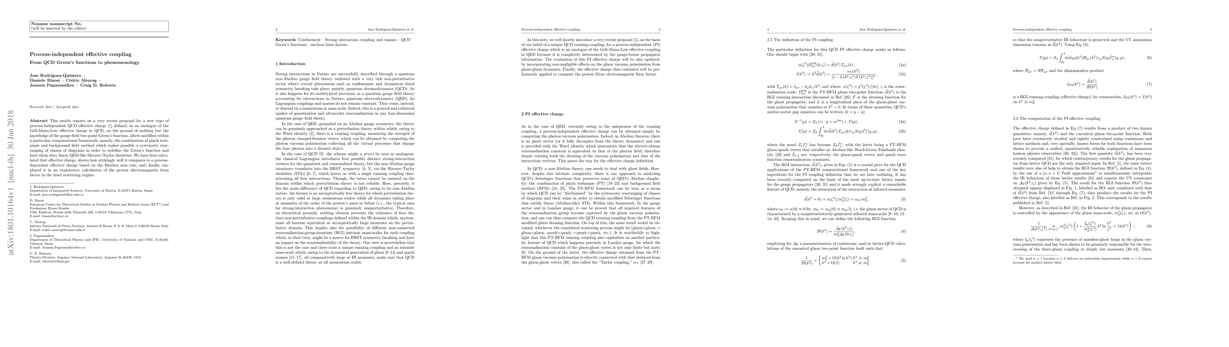 This article reports on a very recent proposal for a new type of process-independent QCD effective charge [Phys.Rev.D96(2017)054026] defined, as an anologue of the Gell-Mann-Low effective charge in QCD, on the ground of nothing but the knowledge of the gauge-field two-point Green's function, albeit modified within a particular computational framework; namely, the combination of pinch technique and background field method which makes possible a systematic rearranging of classes of diagrams in order to redefine the Green's function and have them obey linear QED-like Slavnov-Taylor identities. We have here calculated that effective charge, shown how strikingly well it compares to a process-dependent effective charge based on the Bjorken sum rule; and, finally, employed it in an exploratory calculation of the proton electromagnetic form factor in the hard scattering regime.