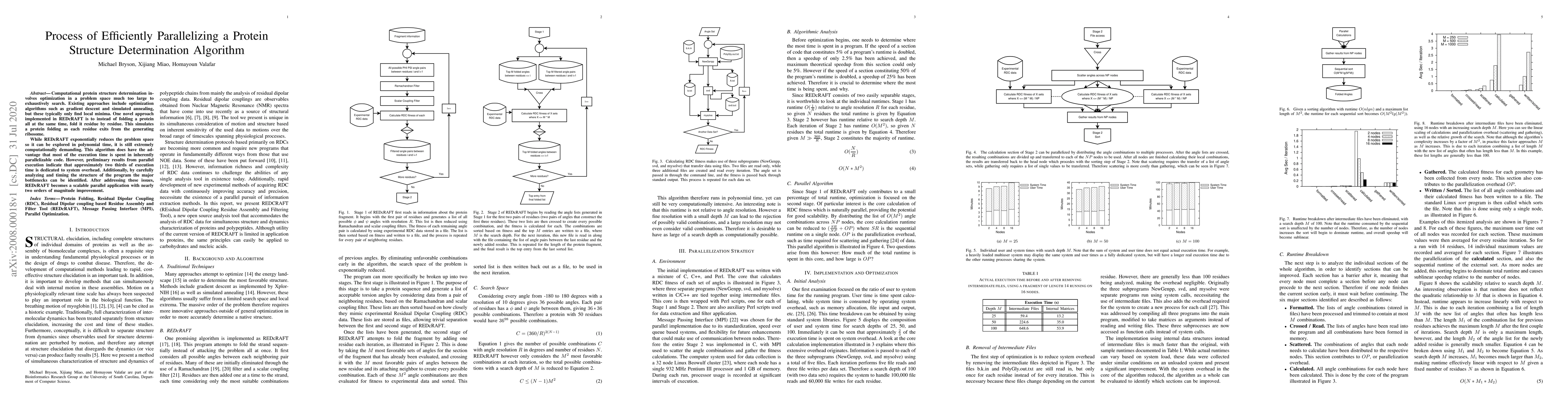 Computational protein structure determination involves optimization in a problem space much too large to exhaustively search. Existing approaches include optimization algorithms such as gradient descent and simulated annealing, but these typically only find local minima. One novel approach implemented in REDcRAFT is to instead of folding a protein all at the same time, fold it residue by residue. This simulates a protein folding as each residue exits from the generating ribosome. While REDcRAFT exponentially reduces the problem space so it can be explored in polynomial time, it is still extremely computationally demanding. This algorithm does have the advantage that most of the execution time is spent in inherently parallelizable code. However, preliminary results from parallel execution indicate that approximately two-thirds of execution time is dedicated to system overhead. Additionally, by carefully analyzing and timing the structure of the program the major bottlenecks can be identified. After addressing these issues, REDcRAFT becomes a scalable parallel application with nearly two orders of magnitude improvement.