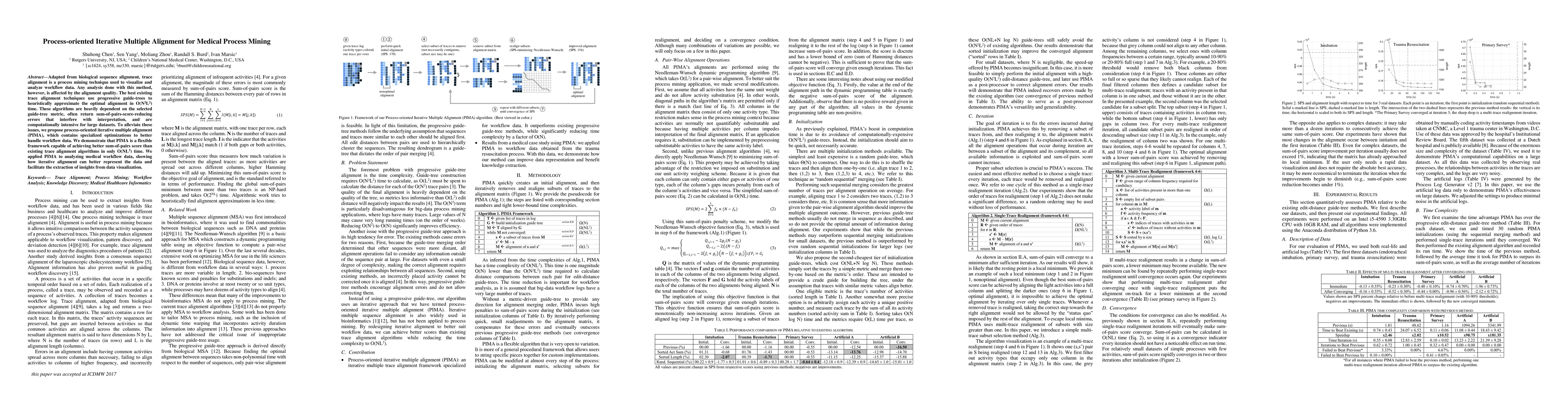 A new method called Process-oriented Iterative Multiple Alignment (PIMA) is proposed to improve trace alignment in medical process mining, achieving better results in less time than existing algorithms.