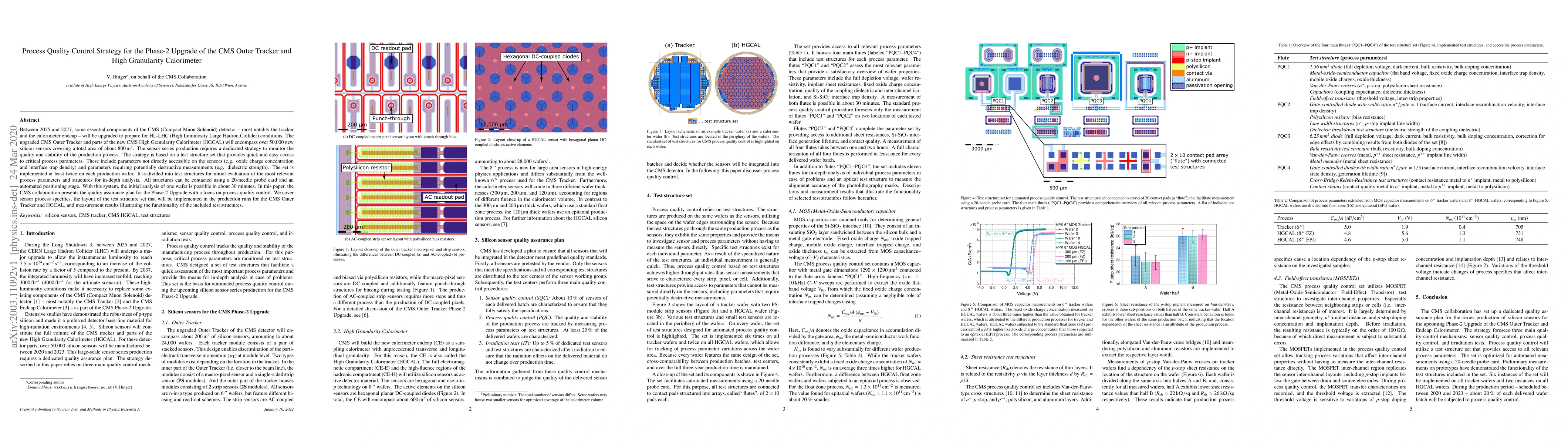 This paper outlines the quality control strategy for the Phase-2 upgrade of the CMS Outer Tracker and High Granularity Calorimeter, focusing on monitoring over 50,000 new silicon sensors. The strategy employs a comprehensive test structure set to evaluate critical process parameters, including non-destructive and destructive measurements, ensuring the stability and quality of the production process.