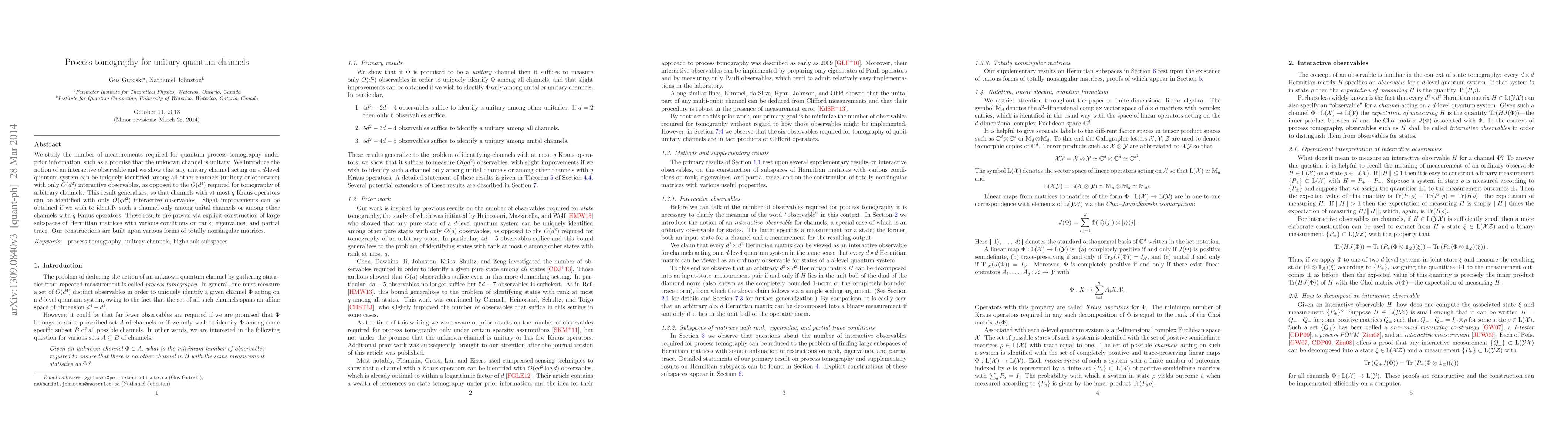 We study the number of measurements required for quantum process tomography under prior information, such as a promise that the unknown channel is unitary. We introduce the notion of an interactive observable and we show that any unitary channel acting on a $d$-level quantum system can be uniquely identified among all other channels (unitary or otherwise) with only $O(d^2)$ interactive observables, as opposed to the $O(d^4)$ required for tomography of arbitrary channels. This result generalizes, so that channels with at most $q$ Kraus operators can be identified with only $O(qd^2)$ interactive observables. Slight improvements can be obtained if we wish to identify such a channel only among unital channels or among other channels with $q$ Kraus operators. These results are proven via explicit construction of large subspaces of Hermitian matrices with various conditions on rank, eigenvalues, and partial trace. Our constructions are built upon various forms of totally nonsingular matrices.