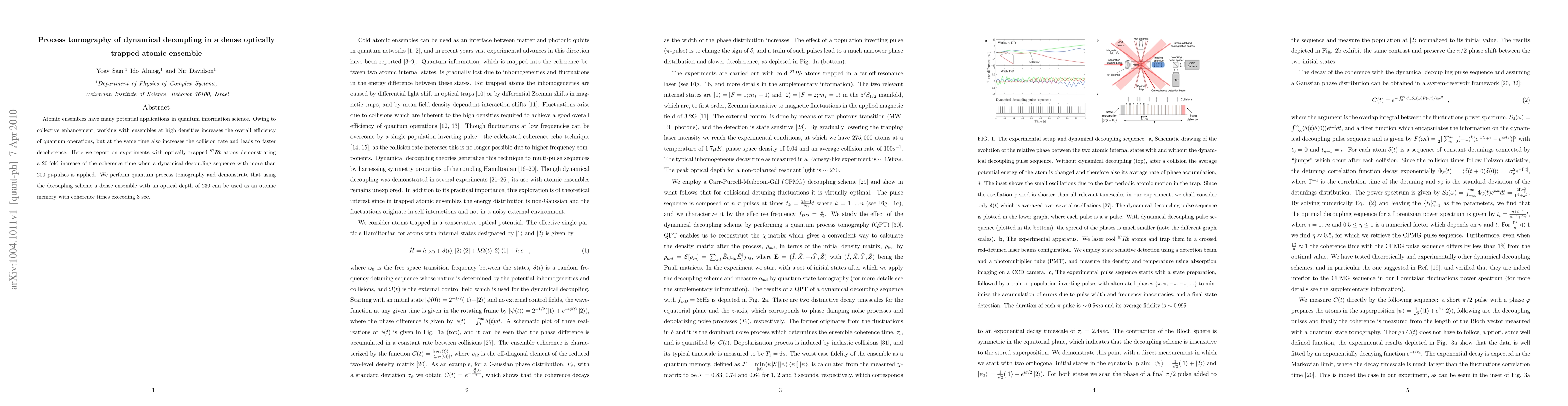 This paper reports on experiments demonstrating a 20-fold increase in coherence time of a dense optically trapped 87Rb atomic ensemble using a dynamical decoupling sequence, achieving coherence times over 3 seconds for an ensemble with an optical depth of 230, validated through quantum process tomography.