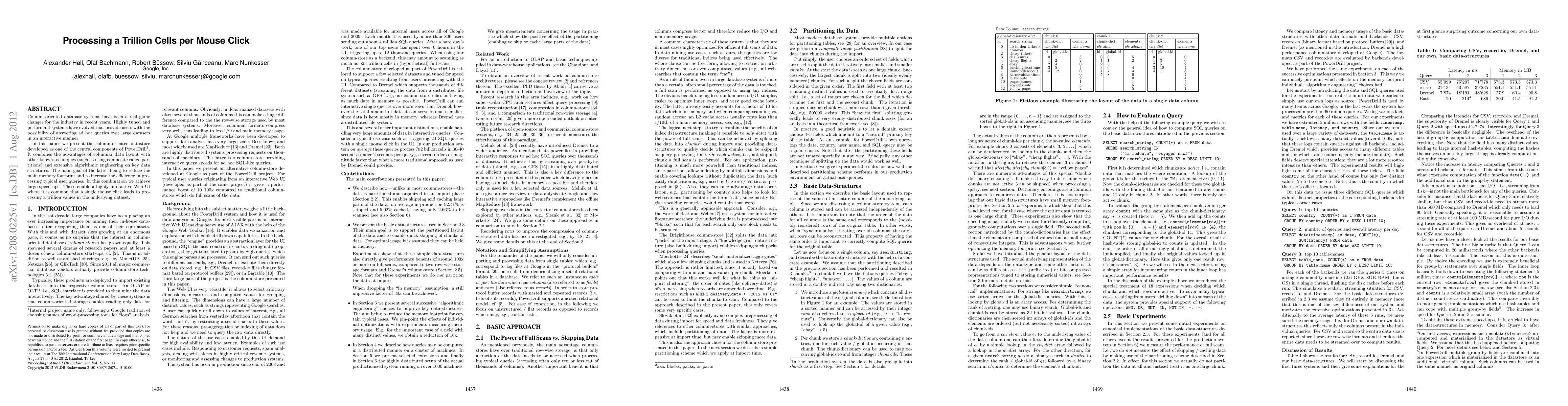 Column-oriented database systems have been a real game changer for the industry in recent years. Highly tuned and performant systems have evolved that provide users with the possibility of answering ad hoc queries over large datasets in an interactive manner. In this paper we present the column-oriented datastore developed as one of the central components of PowerDrill. It combines the advantages of columnar data layout with other known techniques (such as using composite range partitions) and extensive algorithmic engineering on key data structures. The main goal of the latter being to reduce the main memory footprint and to increase the efficiency in processing typical user queries. In this combination we achieve large speed-ups. These enable a highly interactive Web UI where it is common that a single mouse click leads to processing a trillion values in the underlying dataset.