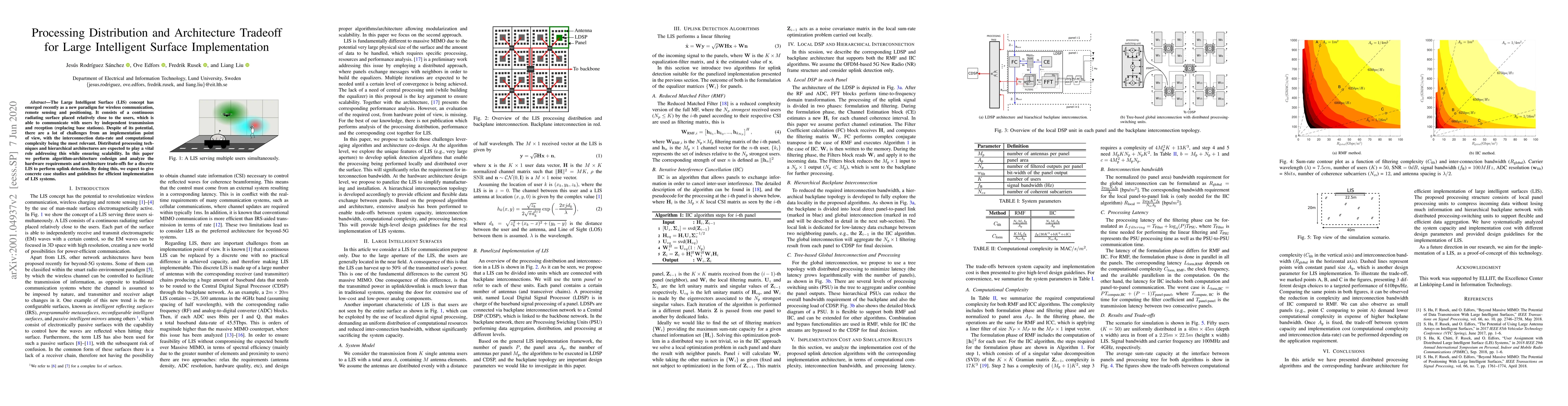 Researchers explore the tradeoffs between processing distribution and architecture for Large Intelligent Surfaces, aiming to improve scalability and efficiency in wireless communication systems. They provide guidelines for efficient implementation of LIS systems through algorithm-architecture codesign and hardware requirements analysis.