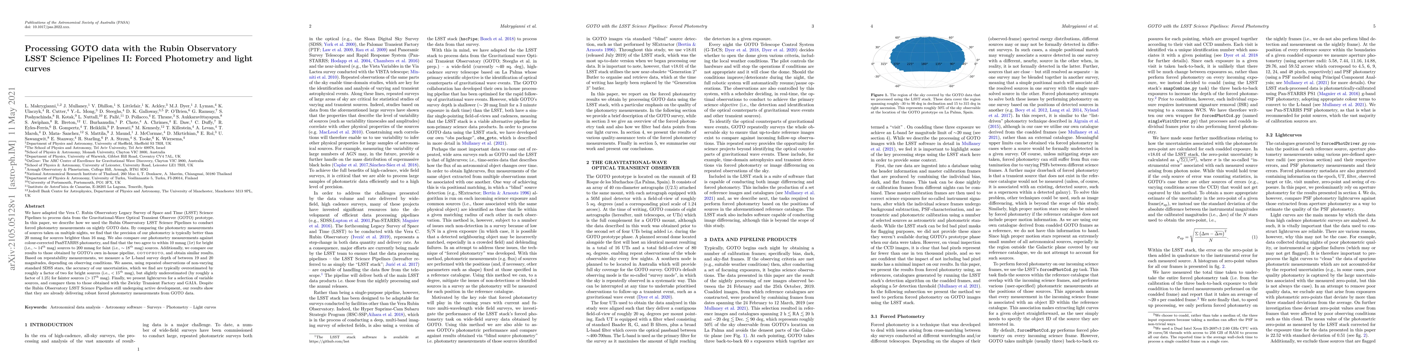 This paper details the adaptation of the Rubin Observatory LSST Science Pipelines for processing GOTO data, achieving precise forced photometry with an accuracy of better than 20 mmag for bright sources. The study also compares these results with other photometric datasets and assesses the survey depth and accuracy of uncertainties, demonstrating the pipelines' potential for robust astronomical observations.