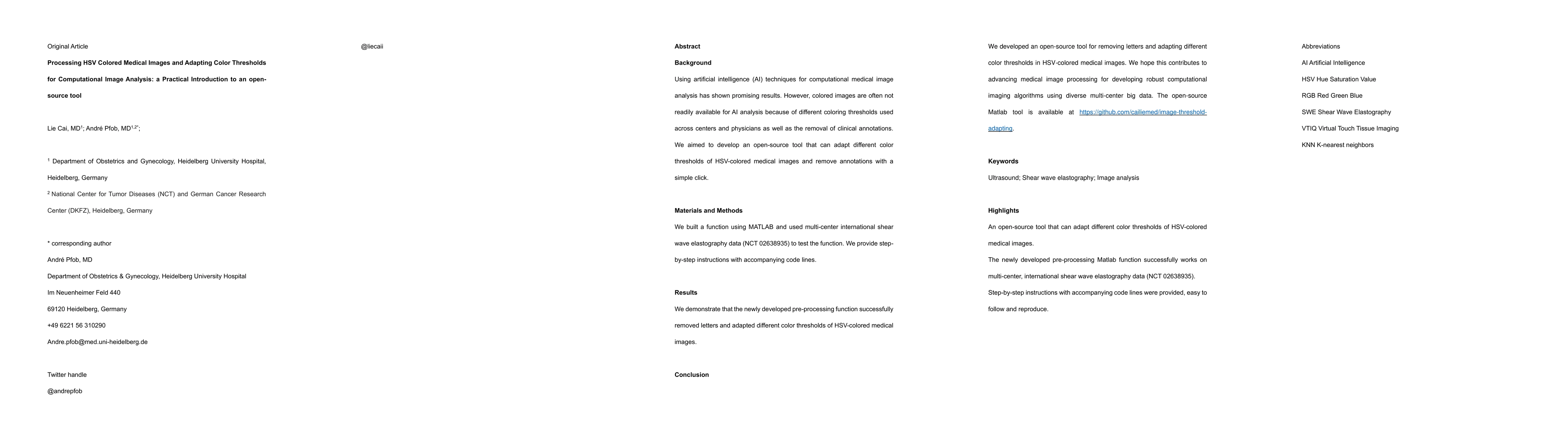 This paper introduces an open-source MATLAB tool designed to adapt color thresholds and remove clinical annotations from HSV-colored medical images, facilitating their use in AI-based computational analysis. The tool was tested with multi-center shear wave elastography data, demonstrating its effectiveness in processing diverse medical images.