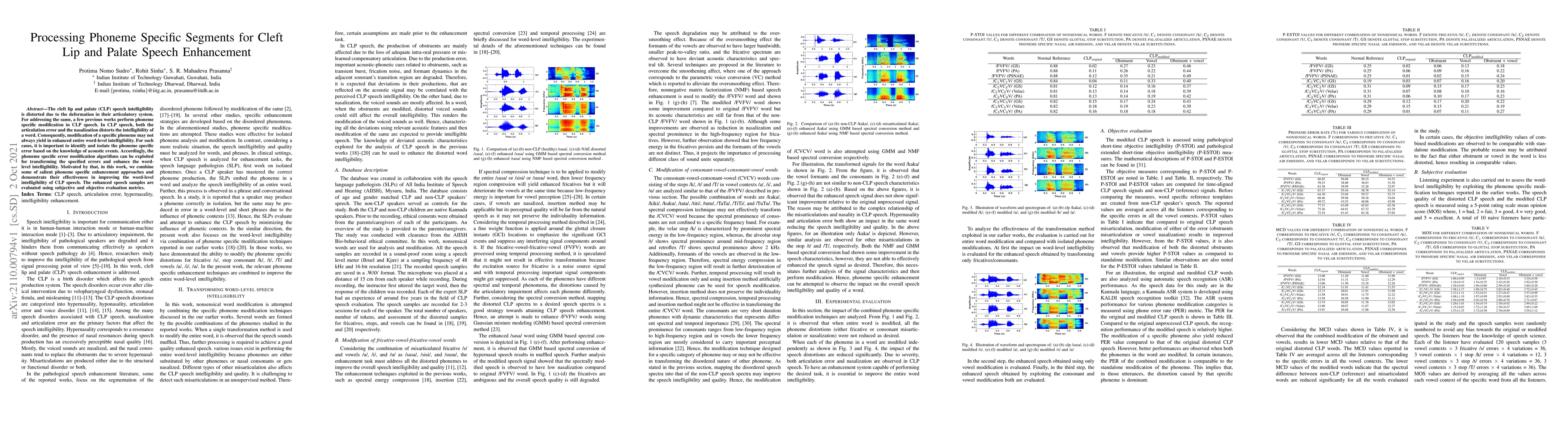 The research combines salient phoneme-specific enhancement approaches for improving word-level intelligibility of Cleft Lip and Palate (CLP) speech. It uses a database of age and gender-matched CLP and non-CLP Kannada speakers' speech, recorded in a soundproof room with a speech level meter.
