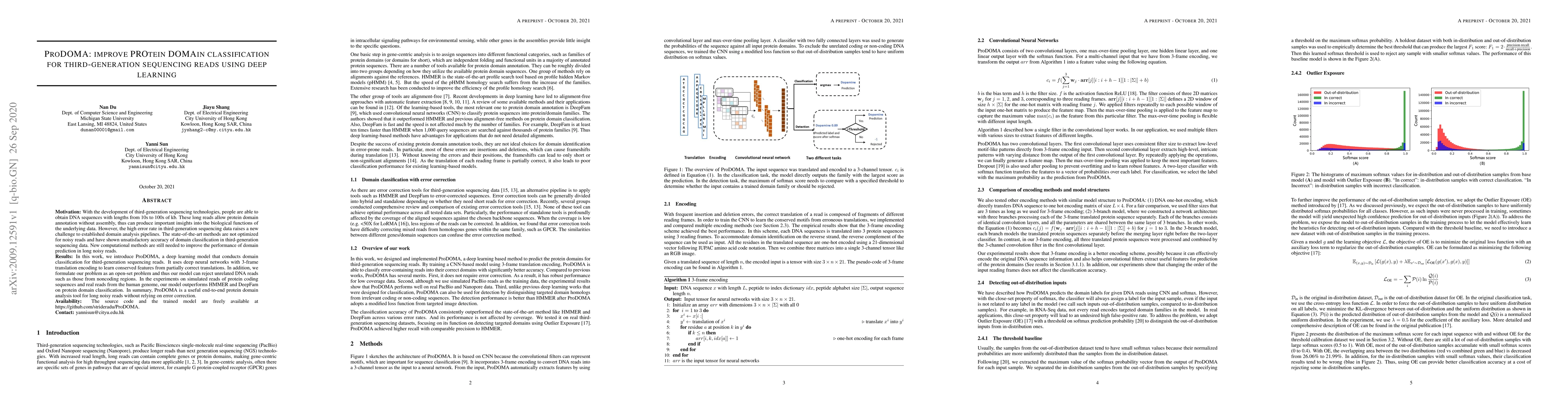 ProDOMA introduces a deep learning model for accurate protein domain classification in third-generation sequencing reads, outperforming existing methods like HMMER and DeepFam. It leverages deep neural networks and an open-set formulation to handle noisy data effectively.