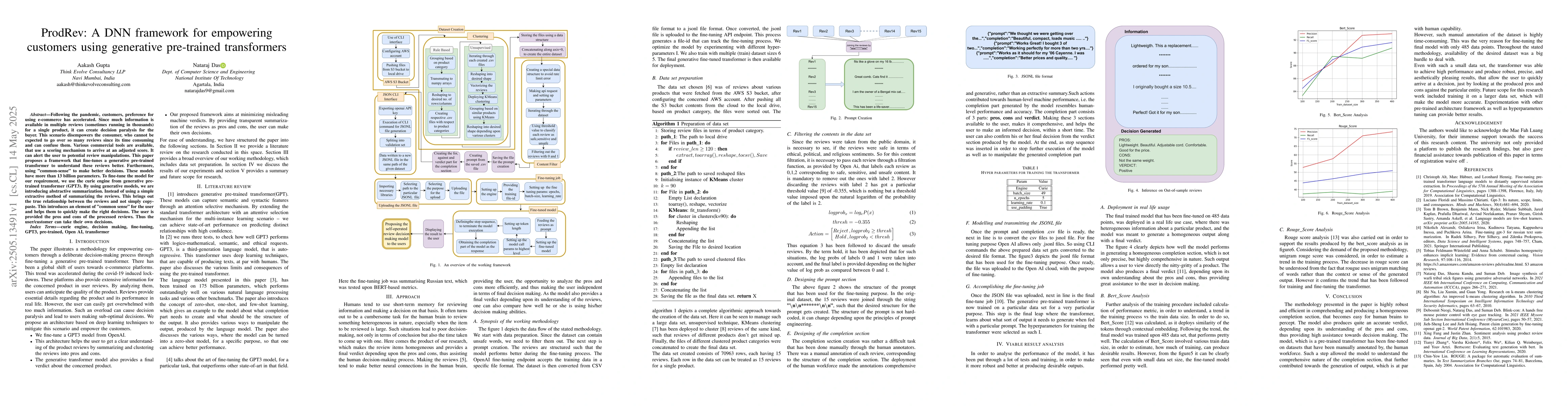 The development and application of a DNN framework (ProdRev) that utilizes generative pre-trained transformers for abstractive summarization of product reviews.