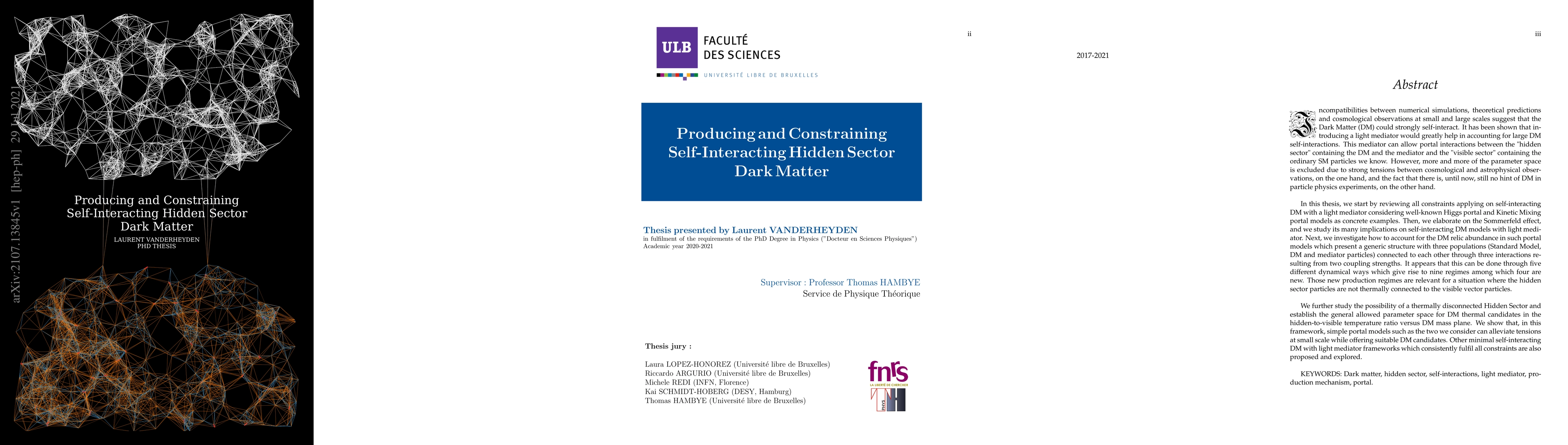 In this thesis, we start by reviewing all constraints applying on self-interacting DM with a light mediator considering well-known Higgs portal and Kinetic Mixing portal models as concrete examples. Then, we elaborate on the Sommerfeld effect, and we study its many implications on self-interacting DM models with light mediator. Next, we investigate how to account for the DM relic abundance in such portal models which present a generic structure with three populations (Standard Model, DM and mediator particles) connected to each other through three interactions resulting from two coupling strengths. It appears that this can be done through five different dynamical ways which give rise to nine regimes among which four are new. Those new production regimes are relevant for a situation where the hidden sector particles are not thermally connected to the visible vector particles. We further study the possibility of a thermally disconnected Hidden Sector and establish the general allowed parameter space for DM thermal candidates in the hidden-to-visible temperature ratio versus DM mass plane. We show that, in this framework, simple portal models such as the two we consider can alleviate tensions at small scale while offering suitable DM candidates. Other minimal self-interacting DM with light mediator frameworks which consistently fulfil all constraints are also proposed and explored.