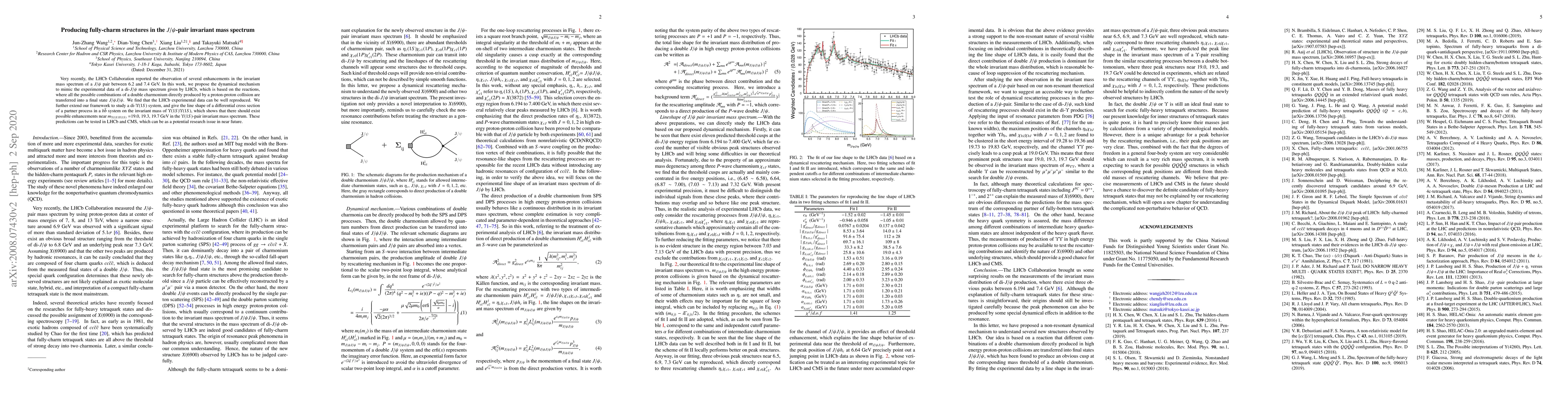 Very recently, the LHCb Collaboration reported the observation of several enhancements in the invariant mass spectrum of a $J/\psi$ pair between 6.2 and 7.4 GeV. In this work, we propose the dynamical mechanism to mimic the experimental data of a di-$J/\psi$ mass spectrum given by LHCb, which is based on the reactions, where all the possible combinations of a double charmonium directly produced by a proton-proton collision are transferred into a final state $J/\psi J/\psi$. We find that the LHCb experimental data can be well reproduced. We further extend our framework to study a di-$\Upsilon(1S)$ system, and give the line shape of a differential cross section of a partner process in a $b\bar{b}$ system on the invariant mass of $\Upsilon(1S)\Upsilon(1S)$, which shows that there should exist possible enhancements near $m_{\Upsilon(1S)\Upsilon(1S)}=$19.0, 19.3, 19.7 GeV in the $\Upsilon(1S)$-pair invariant mass spectrum. These predictions can be tested in LHCb and CMS, which can be as a potential research issue in near future.