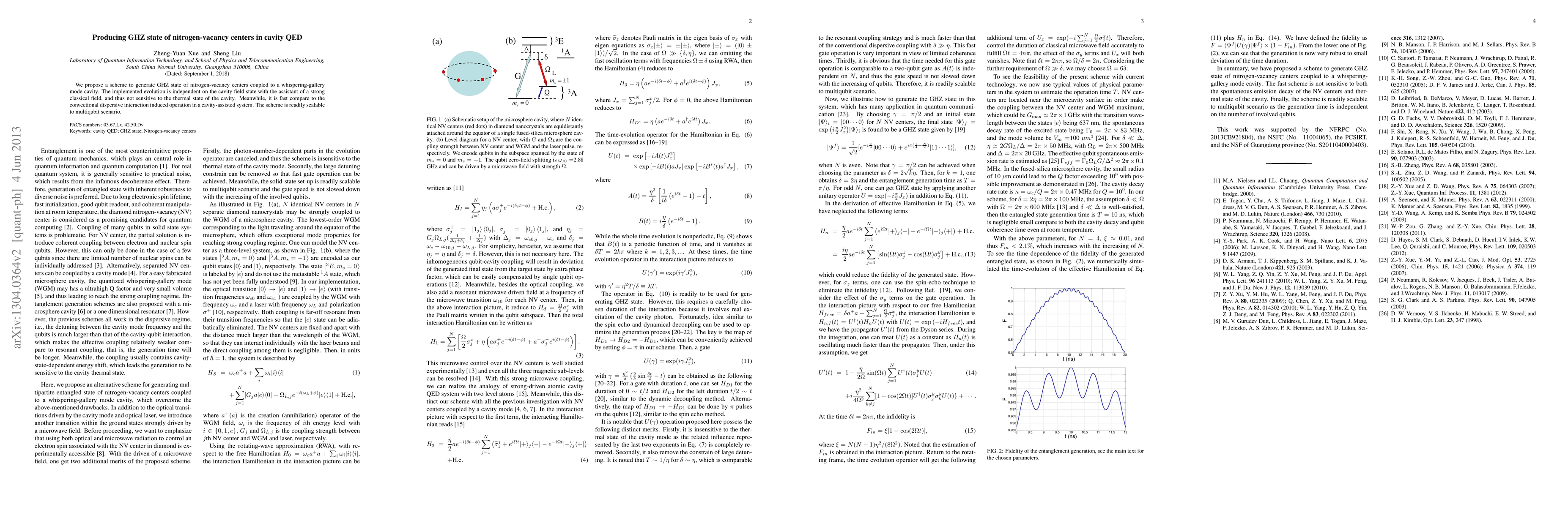 Researchers propose a method to generate a GHZ state in nitrogen-vacancy centers using a whispering-gallery mode cavity, which is fast and insensitive to thermal fluctuations.