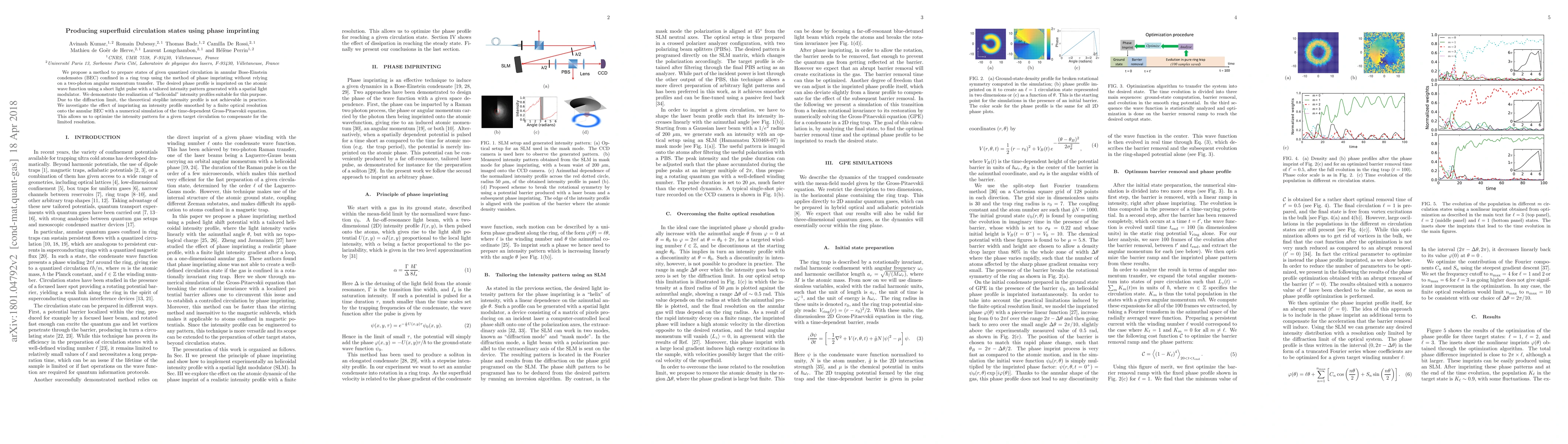 We propose a method to prepare states of given quantized circulation in annular Bose-Einstein condensates (BEC) confined in a ring trap using the method of phase imprinting without relying on a two-photon angular momentum transfer. The desired phase profile is imprinted on the atomic wave function using a short light pulse with a tailored intensity pattern generated with a Spatial Light Modulator. We demonstrate the realization of 'helicoidal' intensity profiles suitable for this purpose. Due to the diffraction limit, the theoretical steplike intensity profile is not achievable in practice. We investigate the effect of imprinting an intensity profile smoothed by a finite optical resolution onto the annular BEC with a numerical simulation of the time-dependent Gross-Pitaevskii equation. This allows us to optimize the intensity pattern for a given target circulation to compensate for the limited resolution.