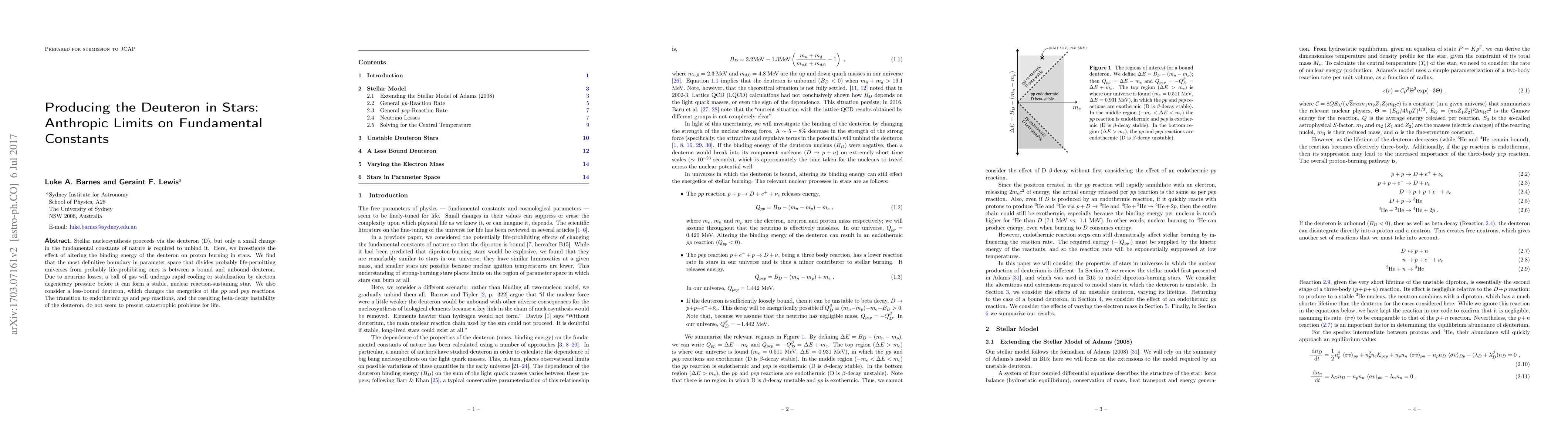 Altering the deuteron's binding energy affects stellar nucleosynthesis, with a bound deuteron marking the boundary between life-permitting and life-prohibiting universes.