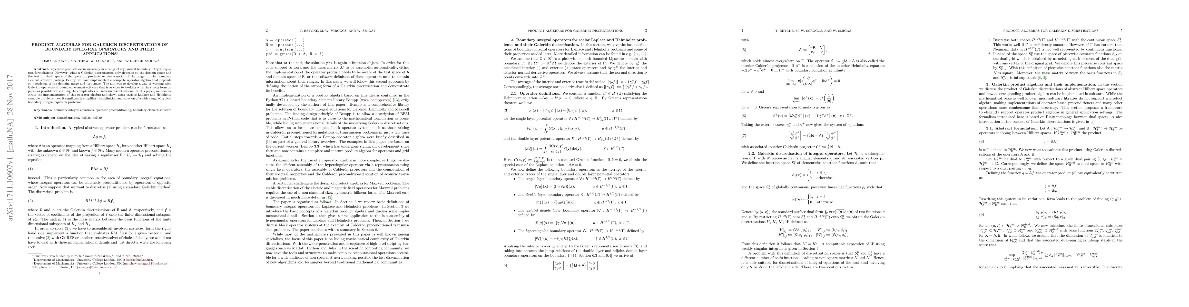 Operator products occur naturally in a range of regularized boundary integral equation formulations. However, while a Galerkin discretisation only depends on the domain space and the test (or dual) space of the operator, products require a notion of the range. In the boundary element software package Bempp we have implemented a complete operator algebra that depends on knowledge of the domain, range and test space. The aim was to develop a way of working with Galerkin operators in boundary element software that is as close to working with the strong form on paper as possible while hiding the complexities of Galerkin discretisations. In this paper, we demonstrate the implementation of this operator algebra and show, using various Laplace and Helmholtz example problems, how it significantly simplifies the definition and solution of a wide range of typical boundary integral equation problems.