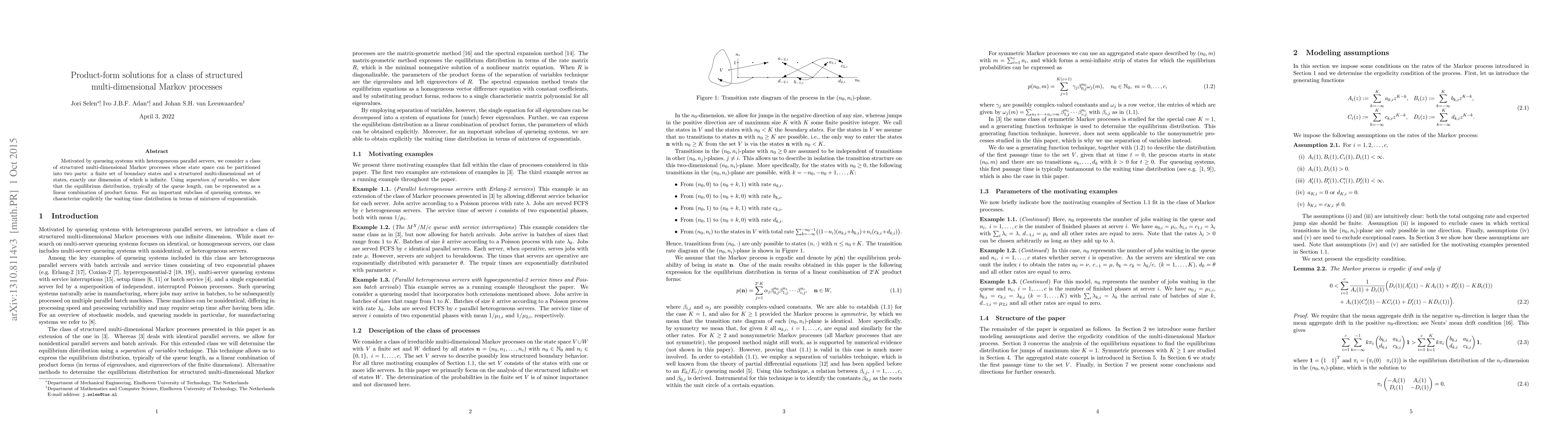 Motivated by queueing systems with heterogeneous parallel servers, we consider a class of structured multi-dimensional Markov processes whose state space can be partitioned into two parts: a finite set of boundary states and a structured multi-dimensional set of states, exactly one dimension of which is infinite. Using separation of variables, we show that the equilibrium distribution, typically of the queue length, can be represented as a linear combination of product forms. For an important subclass of queueing systems, we characterize explicitly the waiting time distribution in terms of mixtures of exponentials.