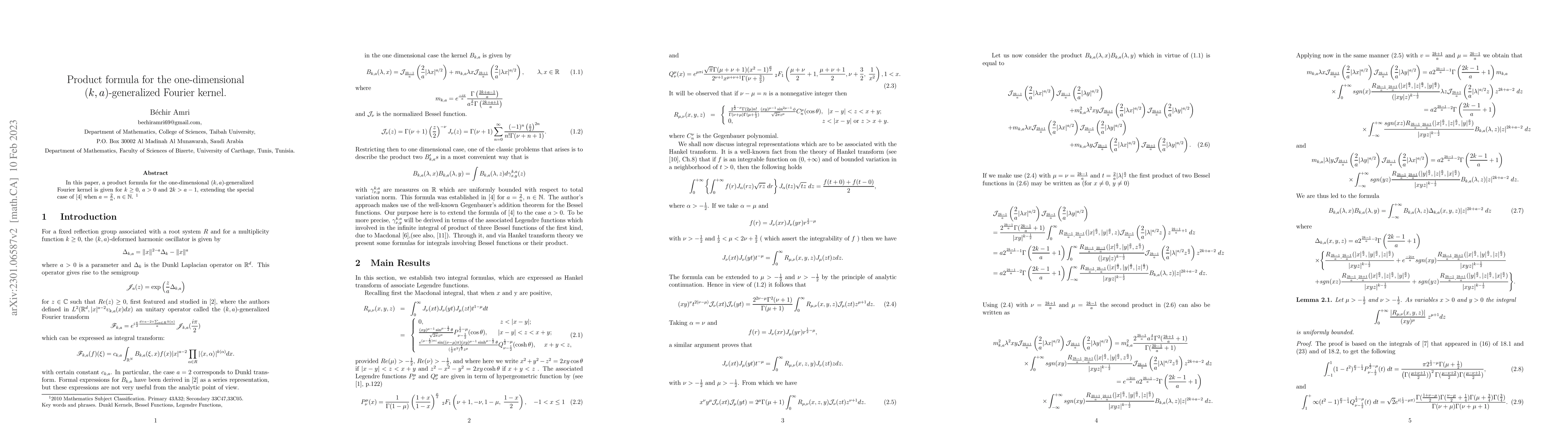In this paper, a product formula for the one-dimensional $(k,a)$-generalized Fourier kernel is given for $k\geq0$, $a>0$ and $2k>a-1$, extending the special case when $a=\frac{2}{n}$, $n\in \mathbb{N}$.