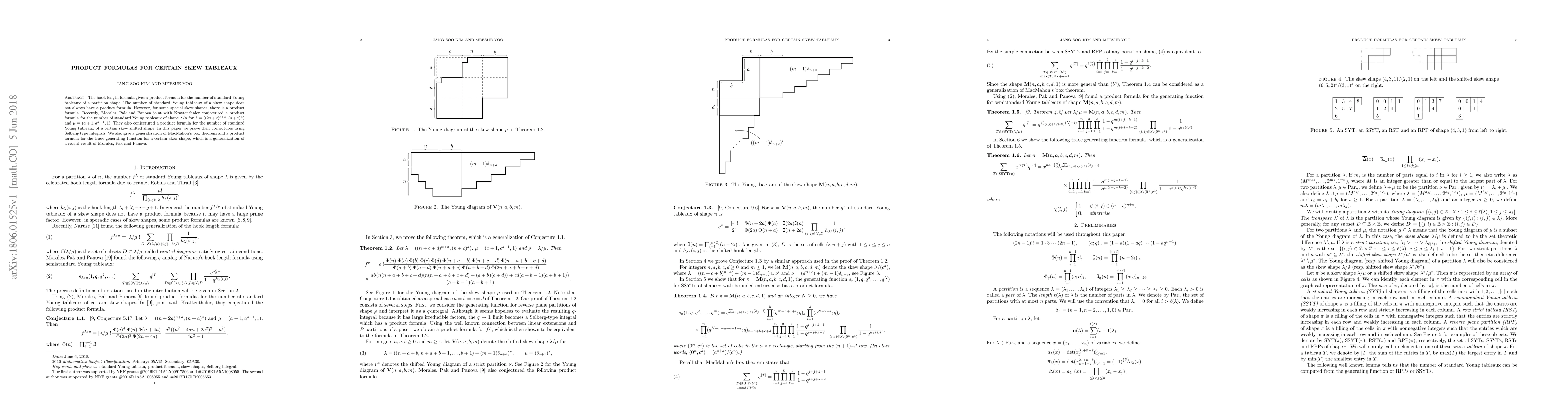 This paper proves conjectures by Morales, Pak, and Panova regarding product formulas for the number of standard Young tableaux of specific skew shapes using Selberg-type integrals, and also generalizes MacMahon's box theorem and provides a product formula for trace generating functions for a generalized skew shape.