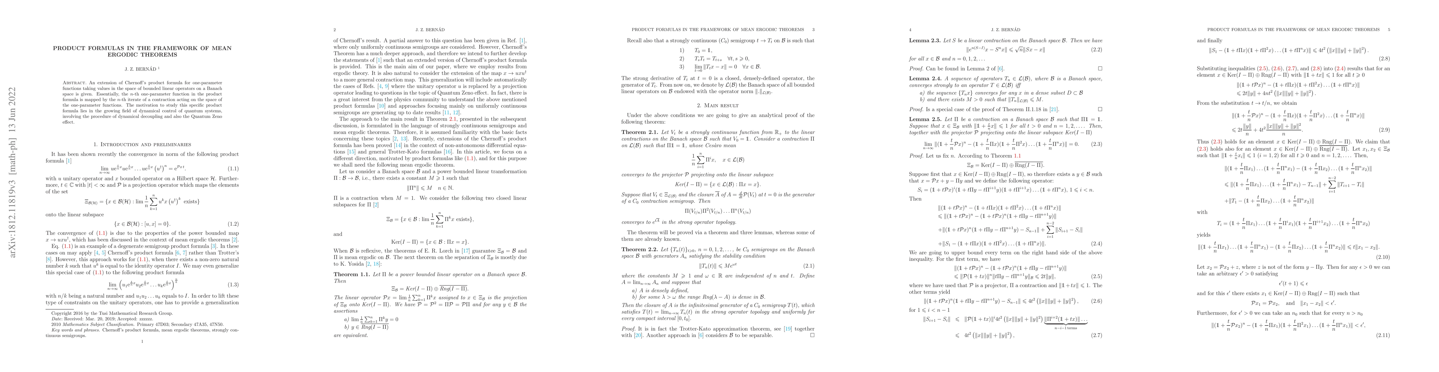 An extension of Chernoff's product formula for one-parameter functions taking values in the space of bounded linear operators on a Banach space is given. Essentially, the $n$-th one-parameter function in the product formula is mapped by the $n$-th iterate of a contraction acting on the space of the one-parameter functions. The motivation to study this specific product formula lies in the growing field of dynamical control of quantum systems, involving the procedure of dynamical decoupling and also the Quantum Zeno effect.