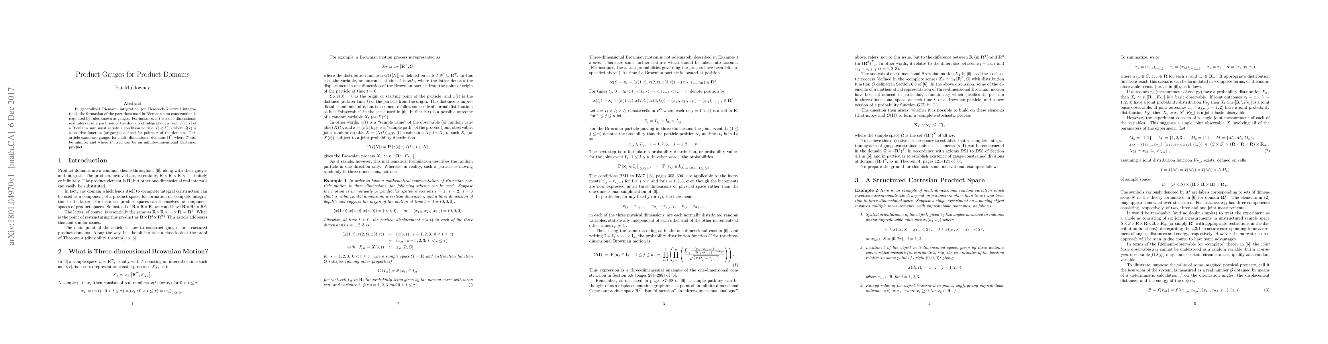 In generalized Riemann integration (or Henstock-Kurzweil integration), the formation of the partitions used in Riemann sum construction is regulated by rules known as gauges. This article examines gauges for multi-dimensional Cartesian product domains.