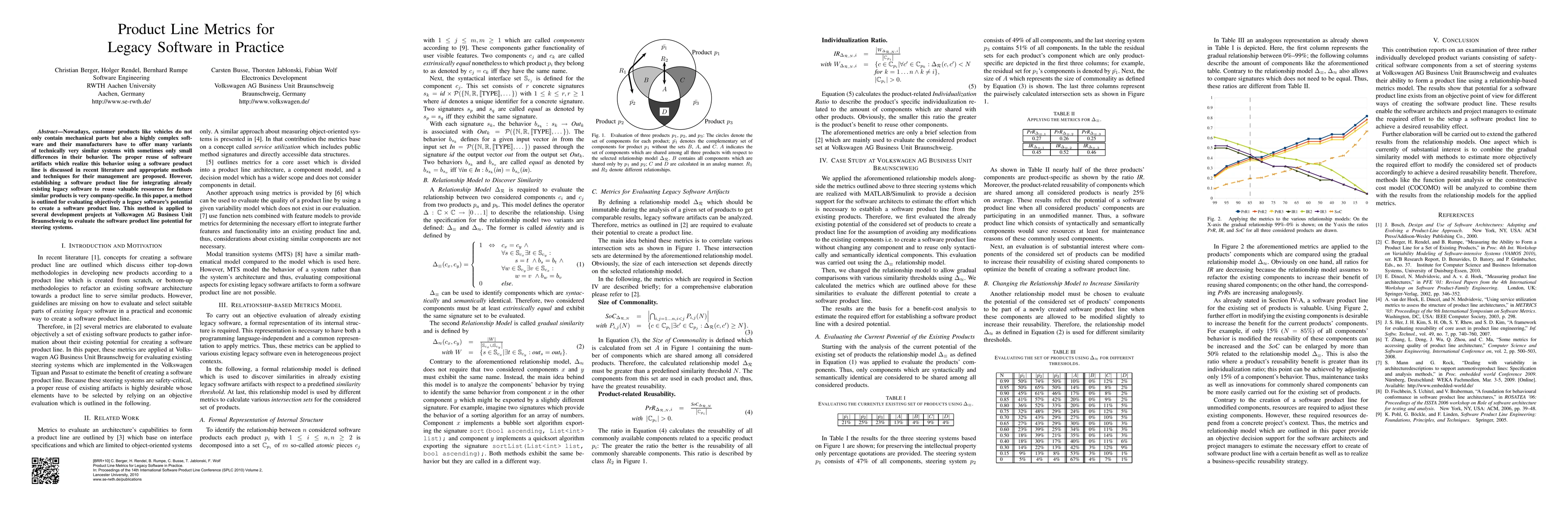 This paper outlines a method for objectively evaluating the potential of legacy software to form a software product line, focusing on reusing valuable resources. It applies this method to Volkswagen AG's Braunschweig projects to assess the software product line potential for steering systems.