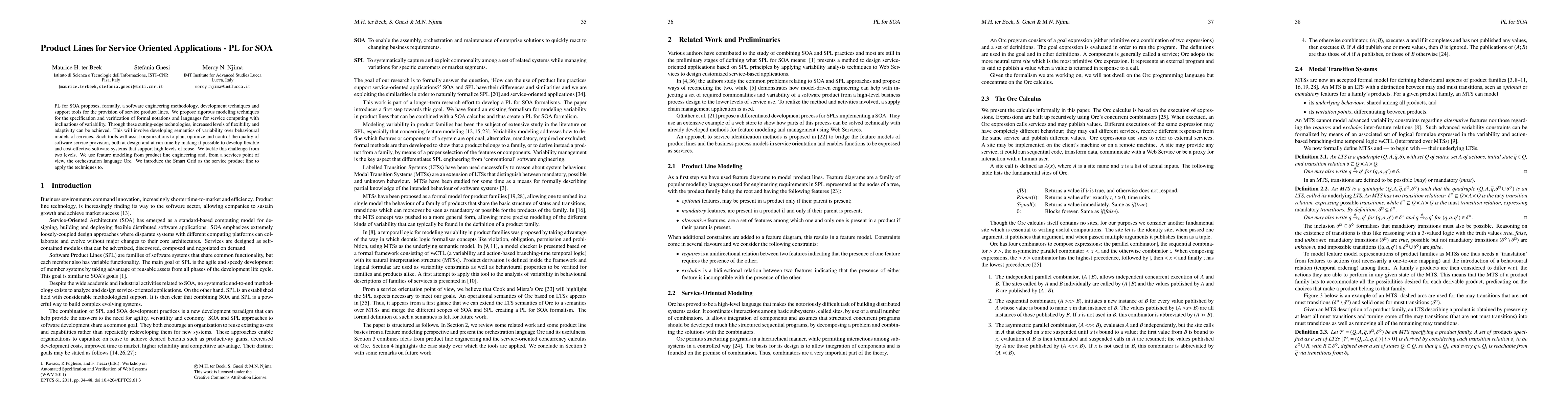 The paper introduces PL for SOA, a methodology for developing service product lines with rigorous modeling techniques for variability and flexibility. It employs feature modeling and orchestration language Orc, demonstrating its application through the Smart Grid service product line.