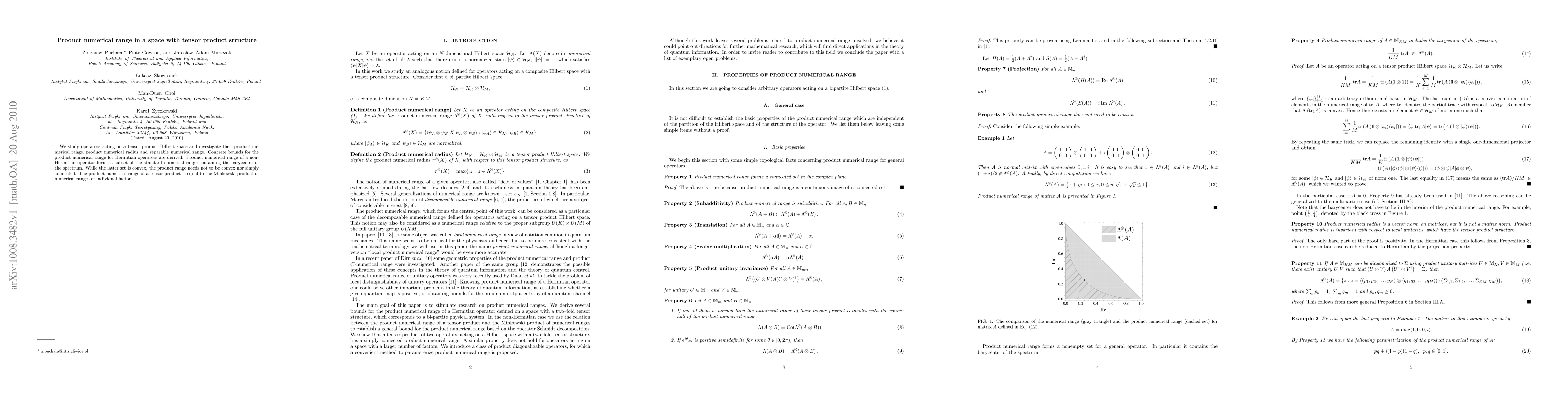 This research explores operators on tensor product Hilbert spaces, defining and analyzing the product numerical range, product numerical radius, and separable numerical range. It establishes bounds for Hermitian operators' product numerical range, showing that for non-Hermitian operators, it's a subset of the standard numerical range, including the spectrum's barycenter. The product numerical range for a tensor product equals the Minkowski product of individual factors' numerical ranges, which may not be convex or simply connected.
