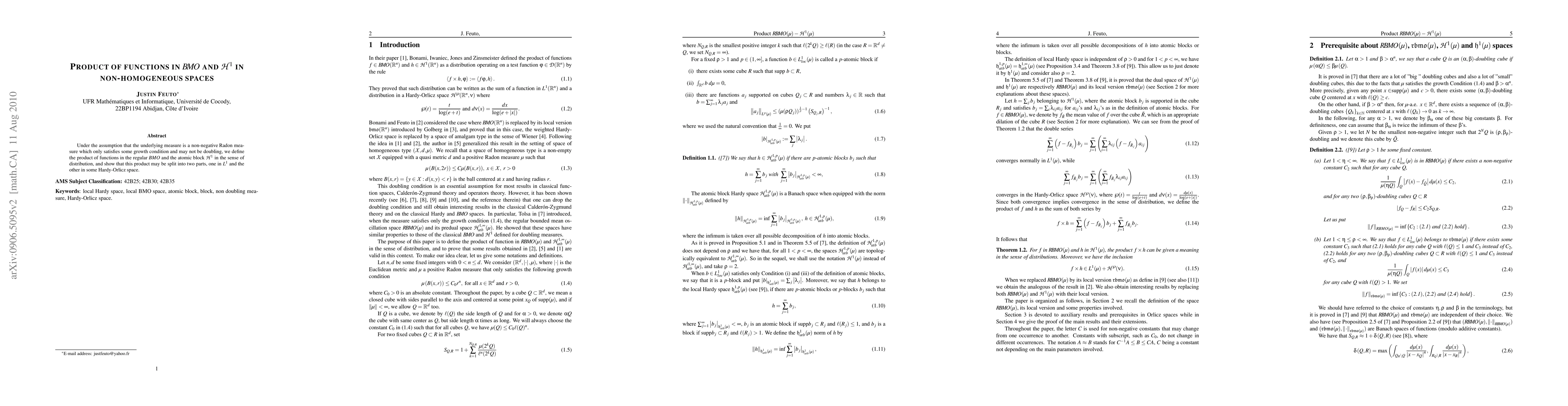 Researchers develop a method to split the product of functions in BMO and H^1 spaces into L^1 and Hardy-Orlicz components, with implications for understanding distributions in non-homogeneous spaces.