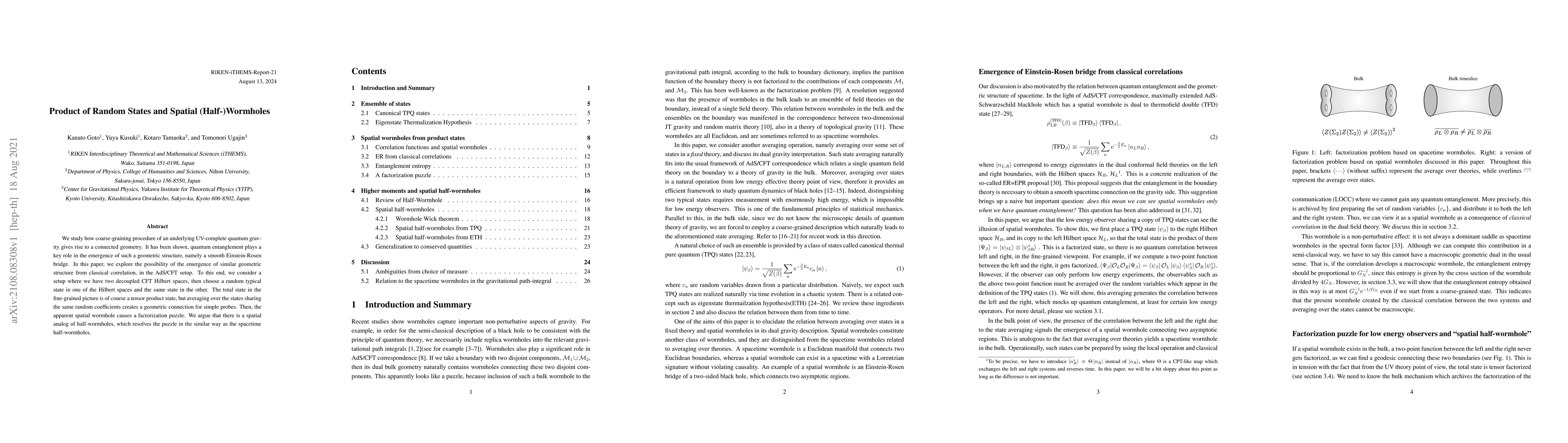 We study how coarse-graining procedure of an underlying UV-complete quantum gravity gives rise to a connected geometry. It has been shown, quantum entanglement plays a key role in the emergence of such a geometric structure, namely a smooth Einstein-Rosen bridge. In this paper, we explore the possibility of the emergence of similar geometric structure from classical correlation, in the AdS/CFT setup. To this end, we consider a setup where we have two decoupled CFT Hilbert spaces, then choose a random typical state in one of the Hilbert spaces and the same state in the other. The total state in the fine-grained picture is of course a tensor product state, but averaging over the states sharing the same random coefficients creates a geometric connection for simple probes. Then, the apparent spatial wormhole causes a factorization puzzle. We argue that there is a spatial analog of half-wormholes, which resolves the puzzle in the similar way as the spacetime half-wormholes.