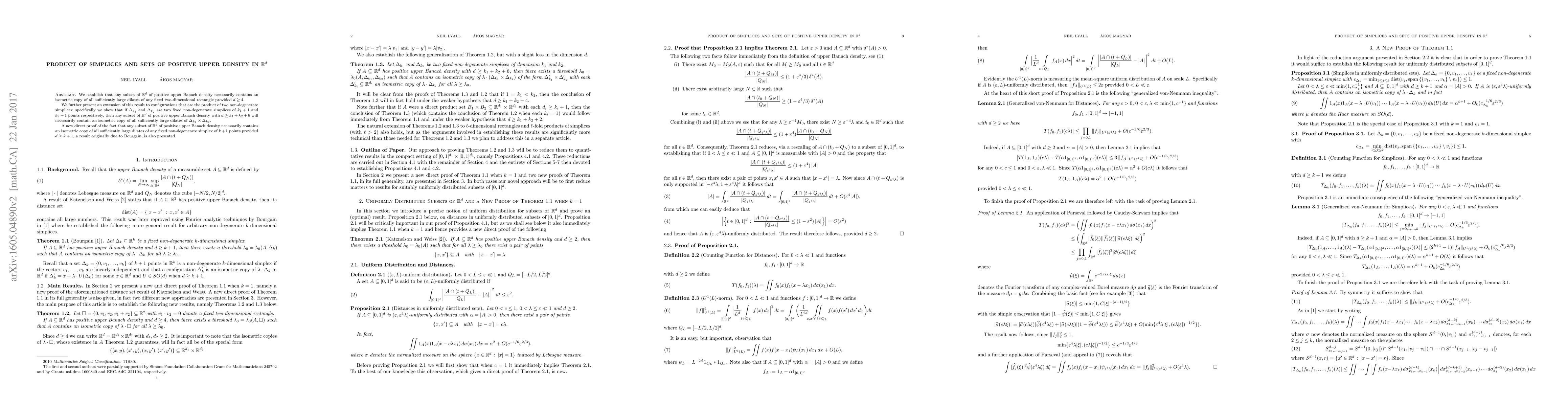 This paper proves that subsets of $\mathbb{R}^d$ with positive upper Banach density contain isometric copies of sufficiently large dilates of specific geometric shapes, including rectangles and products of simplices, under certain dimensional conditions. It also provides a new proof for the existence of large dilates of non-degenerate simplices in such subsets.