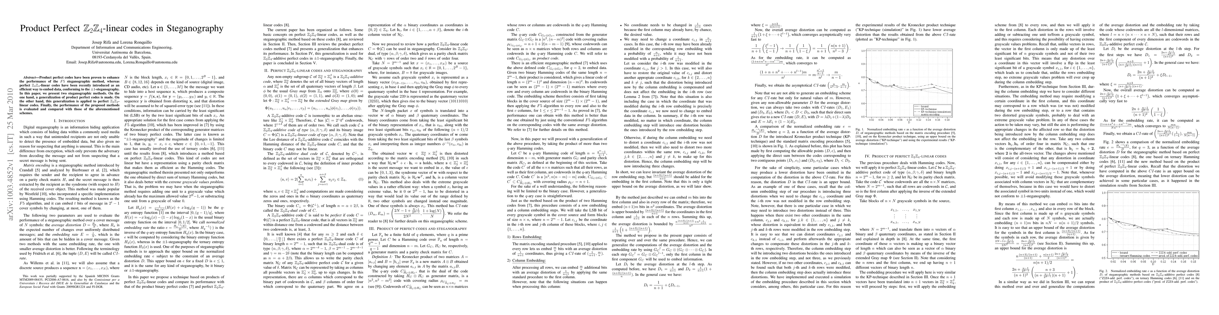 Product perfect codes have been proven to enhance the performance of the F5 steganographic method, whereas perfect Z2Z4-linear codes have been recently introduced as an efficient way to embed data, conforming to the +/-1-steganography. In this paper, we present two steganographic methods. On the one hand, a generalization of product perfect codes is made. On the other hand, this generalization is applied to perfect Z2Z4-linear codes. Finally, the performance of the proposed methods is evaluated and compared with those of the aforementioned schemes.