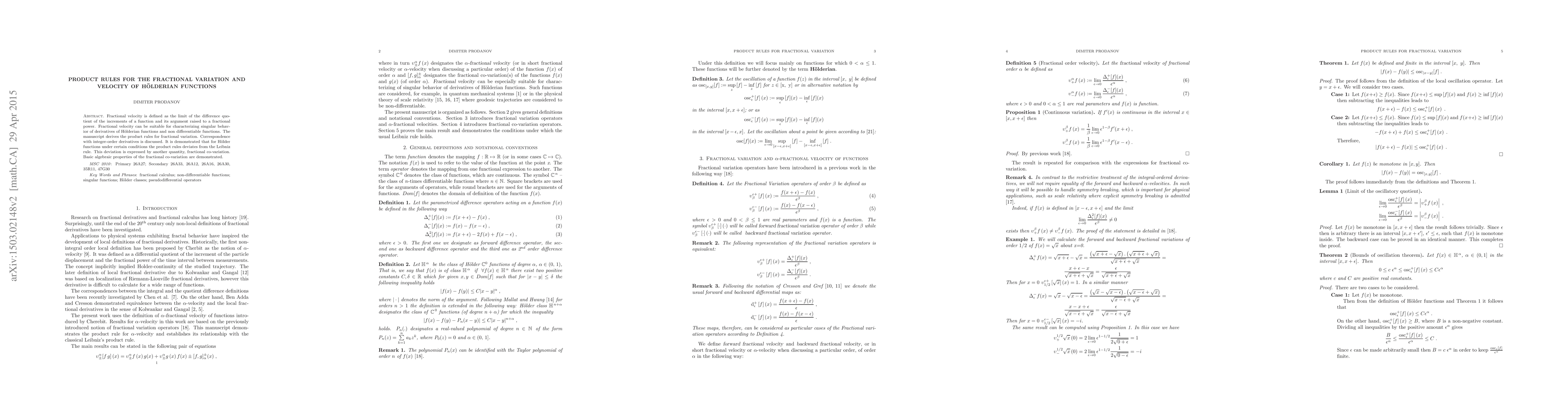 Fractional variation is defined as the limit of the difference quotient of the increments of a function and its argument raised to a fractional power. Fractional velocity can be suitable for characterizing singular behavior of derivatives of H\"olderian functions and non differentiable functions. The manuscript derives the product rules for fractional variation. Correspondence with integer-order derivatives is discussed. It is demonstrated that for H\"older functions under certain conditions the product rules deviates from the Leibniz rule. This deviation is expressed by another quantity, fractional co-variation. Basic algebraic properties of the fractional co-variation are demonstrated.