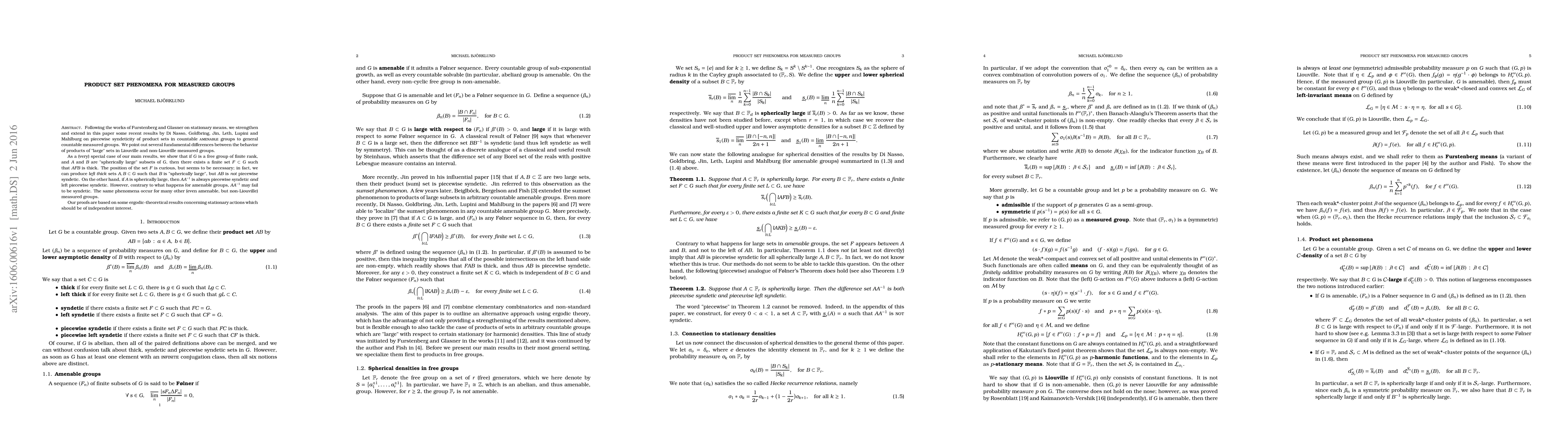Researchers extend previous results on product sets in measured groups to general countable measured groups, revealing fundamental differences between the behavior of products of large sets in Liouville and non-Liouville groups.