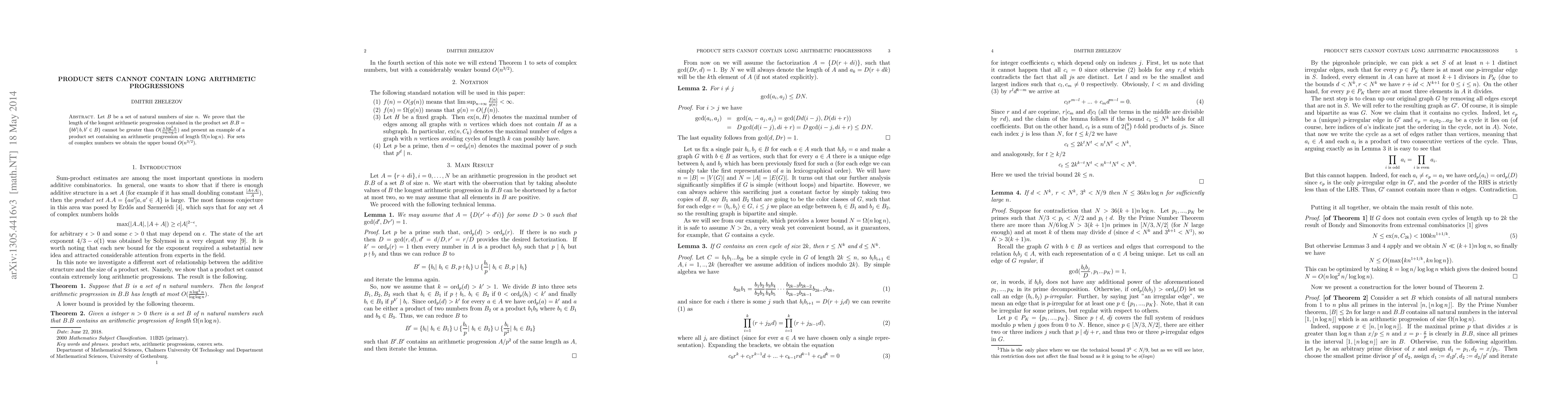 Researchers prove that the longest arithmetic progression in a product set of natural numbers cannot exceed O(n log^2 n / log log n) and provide an example showing it can reach Omega(n log n), while a similar bound holds for complex number sets.