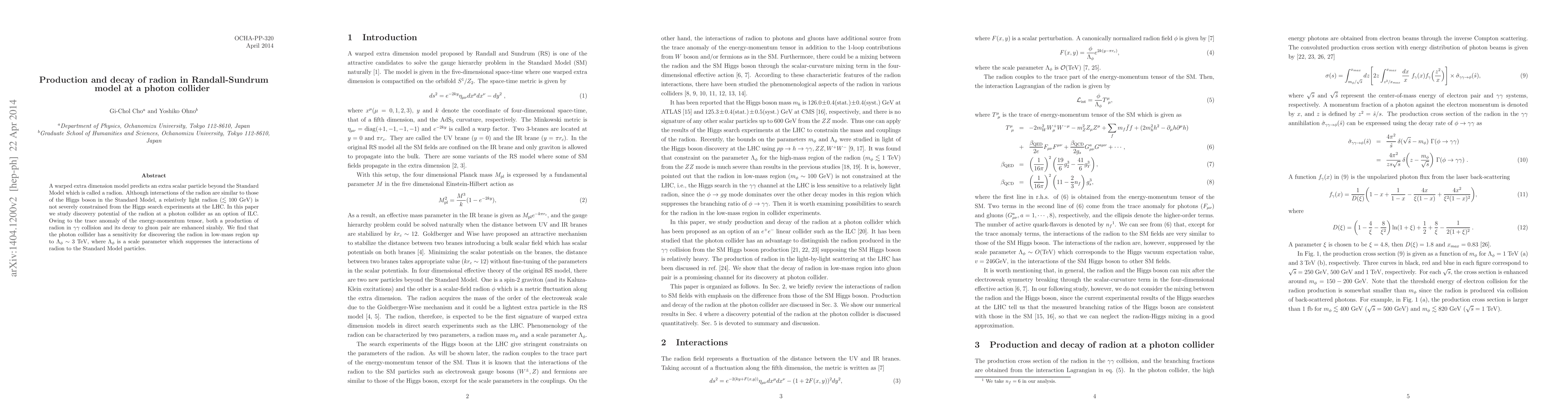 This paper investigates the potential discovery of a radion, an extra scalar particle predicted by the warped extra dimension model, at a photon collider. It finds that the radion's production and decay are significantly enhanced due to the trace anomaly, allowing the photon collider to detect the radion in the low-mass region up to $\Lambda_\phi \sim 3$ TeV.
