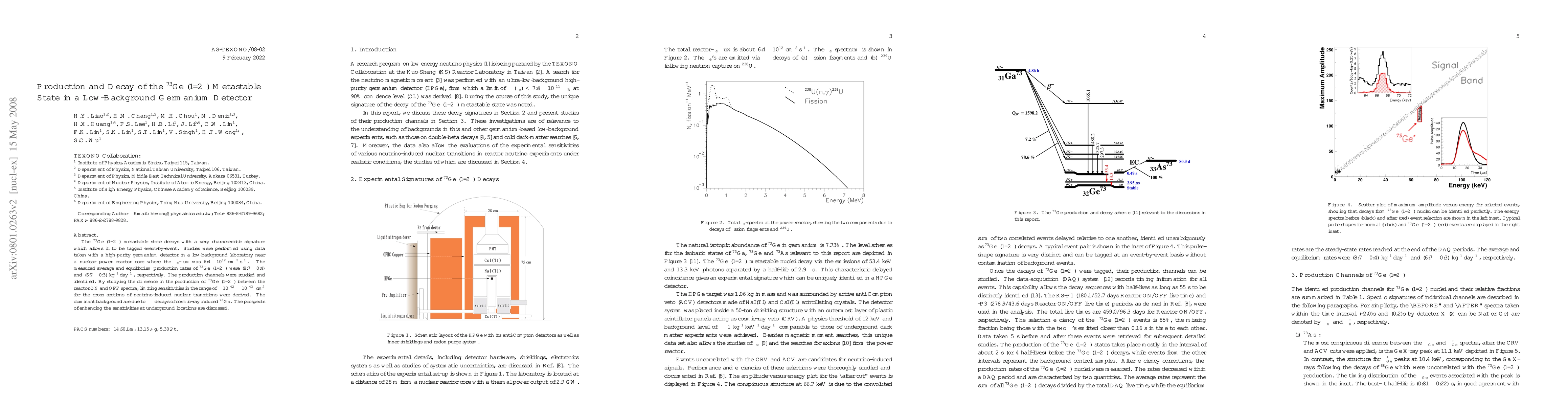 The $\ge73m$ metastable states decay with a very characteristic signature which allow them to be tagged event-by-event. Studies were performed using data taken with a high-purity germanium detector in a low-background laboratory near a nuclear power reactor core where $\nuebar$-flux was $\rm{6.4 \times 10^{12} ~ cm^{-2} s^{-1}}$. The measured average and equilibrium production rates of $\ge73m$ were $\rm{(8.7 \pm 0.4)}$ and $\rm{(6.7 \pm 0.3) ~ kg^{-1} day^{-1}}$, respectively. The production channels were studied and identified. By studying the difference in the production of $\ge73m$ between the reactor ON and OFF spectra, the limiting sensitivities at the range of $\rm{\sim 10^{-42} - 10^{-43} ~ cm^2}$ for the cross-sections of neutrino-induced nuclear transitions were derived. The dominant background are due to $\beta$-decays of cosmic-ray induced $^{73}$Ga. The prospects of enhancing the sensitivities at underground locations are discussed.