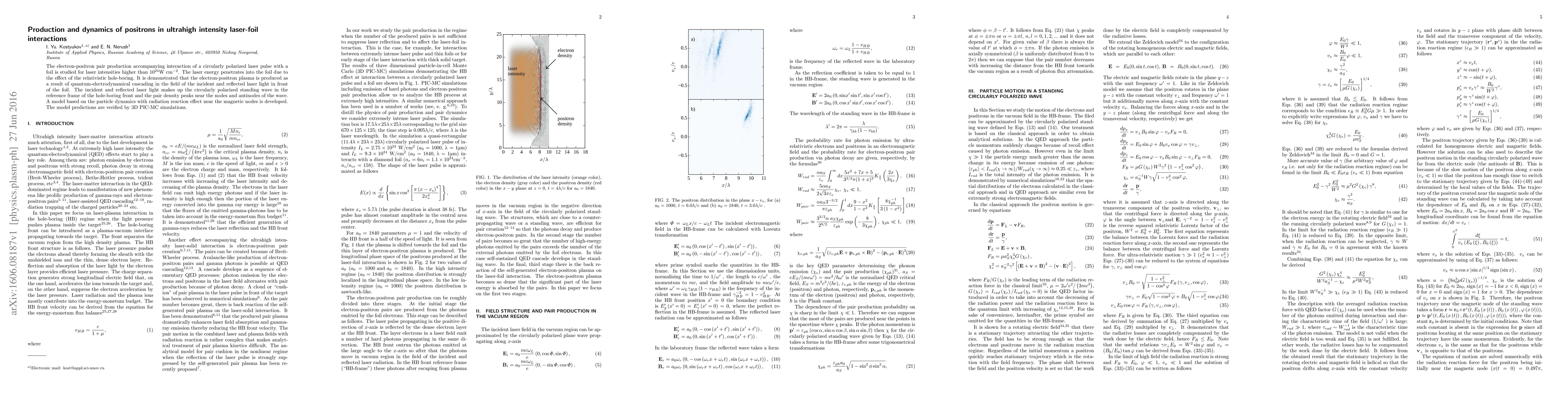 This paper investigates the production of electron-positron pairs in ultrahigh intensity laser-foil interactions, demonstrating that quantum-electrodynamical cascading generates a plasma in the relativistic hole-boring effect. A model incorporating particle dynamics and radiation reaction effects is validated by 3D PIC-MC simulations.