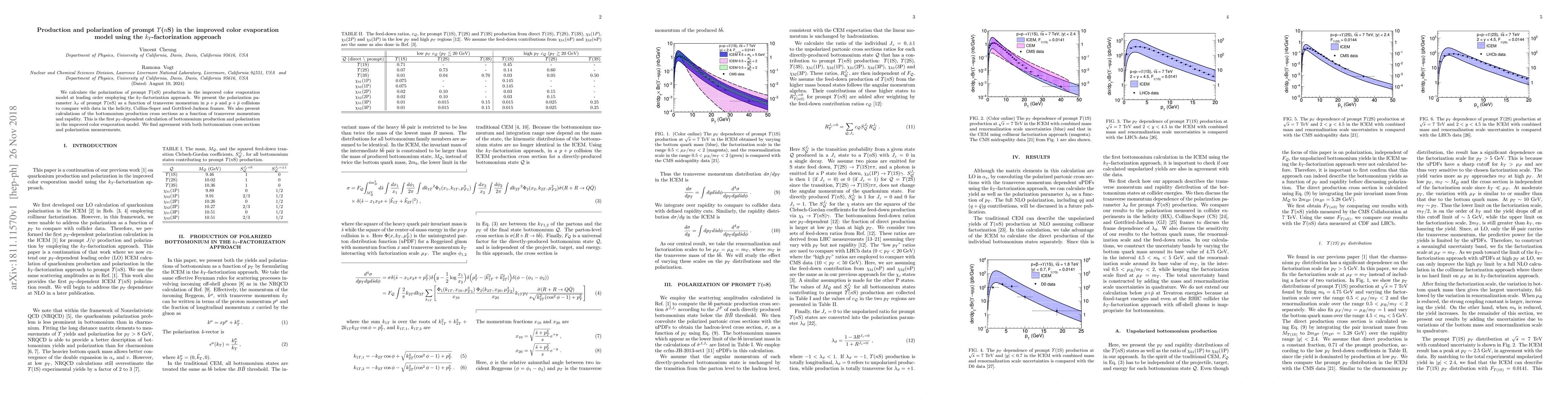 This paper calculates the polarization of prompt $\varUpsilon$($n$S) in the improved color evaporation model using $k_T$-factorization, presenting $\lambda_\vartheta$ as a function of transverse momentum for $p+p$ and $p+\bar{p}$ collisions. It also reports the first $p_T$-dependent calculations of bottomonium production cross sections and finds agreement with experimental data.