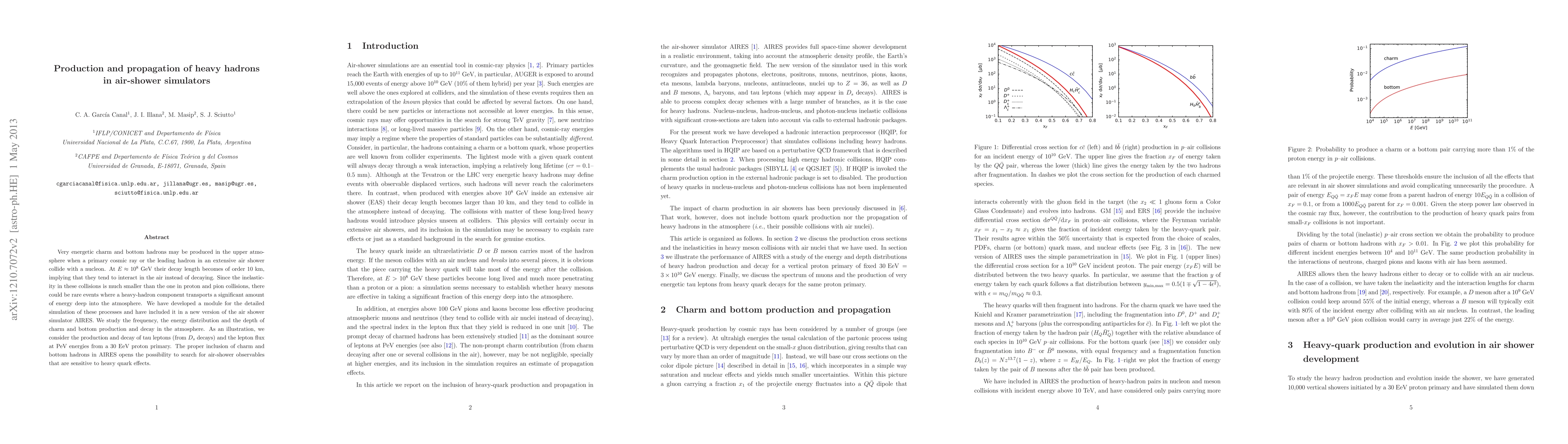 Very energetic charm and bottom hadrons may be produced in the upper atmosphere when a primary cosmic ray or the leading hadron in an extensive air shower collide with a nucleon. At $E\approx 10^8$ GeV their decay length becomes of the order of 10 km, implying that they tend to interact in the air instead of decaying. Since the inelasticity in these collisions is much smaller than the one in proton and pion collisions, there could be rare events where a heavy-hadron component transports a significant amount of energy deep into the atmosphere. We have developed a module for the detailed simulation of these processes and have included it in a new version of the air shower simulator AIRES. We study the frequency, the energy distribution and the depth of charm and bottom production, as well as the depth and the energy distribution of these quarks when they decay. As an illustration, we consider the production and decay of tau leptons (from $D_s$ decays) and the lepton flux at PeV energies from a 30 EeV proton primary. The proper inclusion of charm and bottom hadrons in AIRES opens the possibility to search for air-shower observables that are sensitive to heavy quark effects.