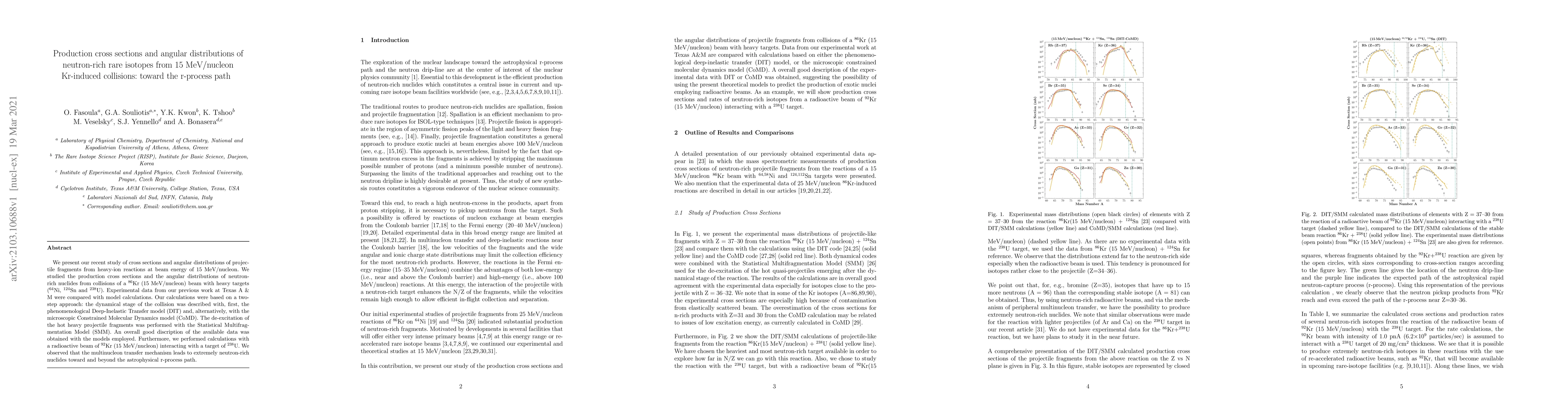 This study investigates the production cross sections and angular distributions of neutron-rich isotopes from 15 MeV/nucleon Kr-induced collisions, using models to simulate heavy-ion reactions. The results show a good match between experimental data and model calculations, highlighting the potential of multinucleon transfer mechanisms to produce extremely neutron-rich isotopes relevant to the r-process path.
