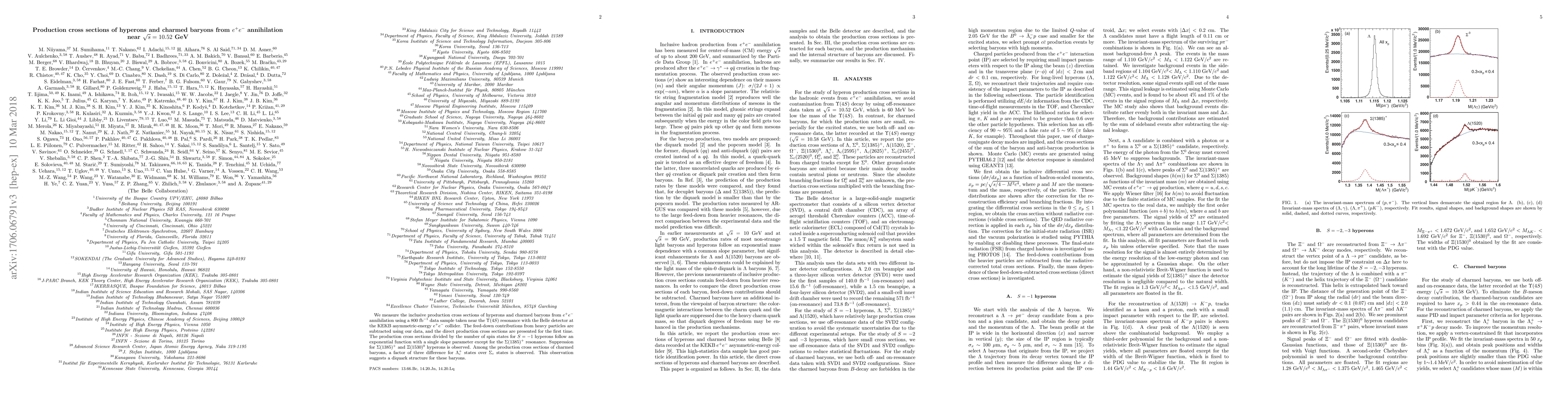 This study measures the inclusive production cross sections of hyperons and charmed baryons from $e^+e^-$ annihilation near $\sqrt{s} = 10.52$~GeV using Belle detector data. Direct production cross sections are presented, revealing suppression for certain hyperons and a three-fold difference in production rates for $\Lambda_c^+$ versus $\Sigma_c$, suggesting a diquark structure.